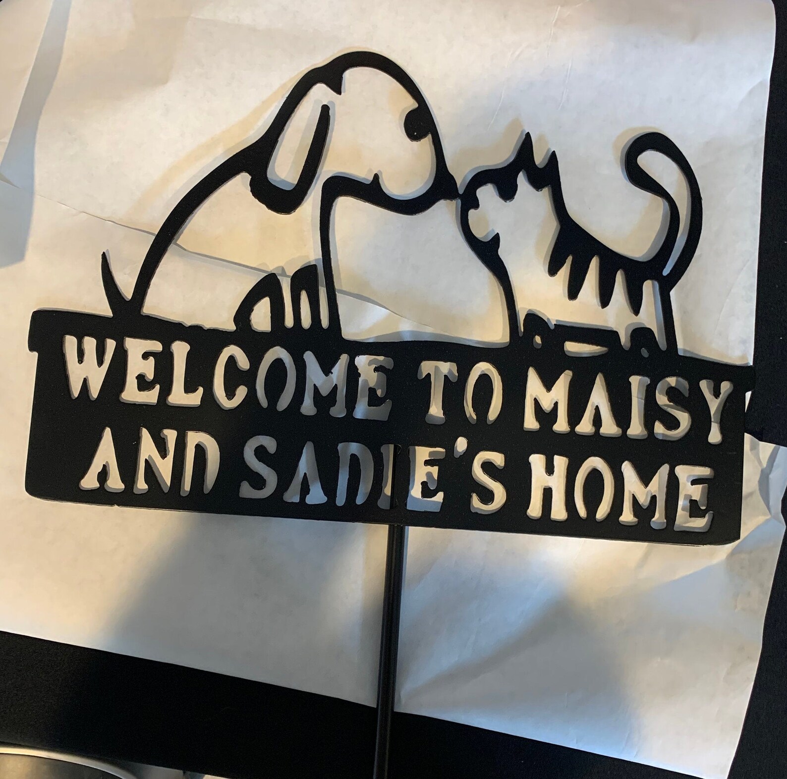 Personalized Dog & Cat Kissing Metal Sign – Weatherproof