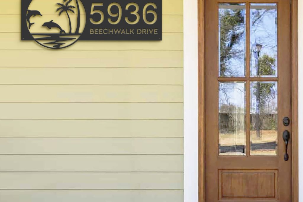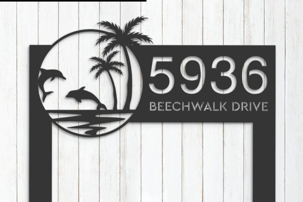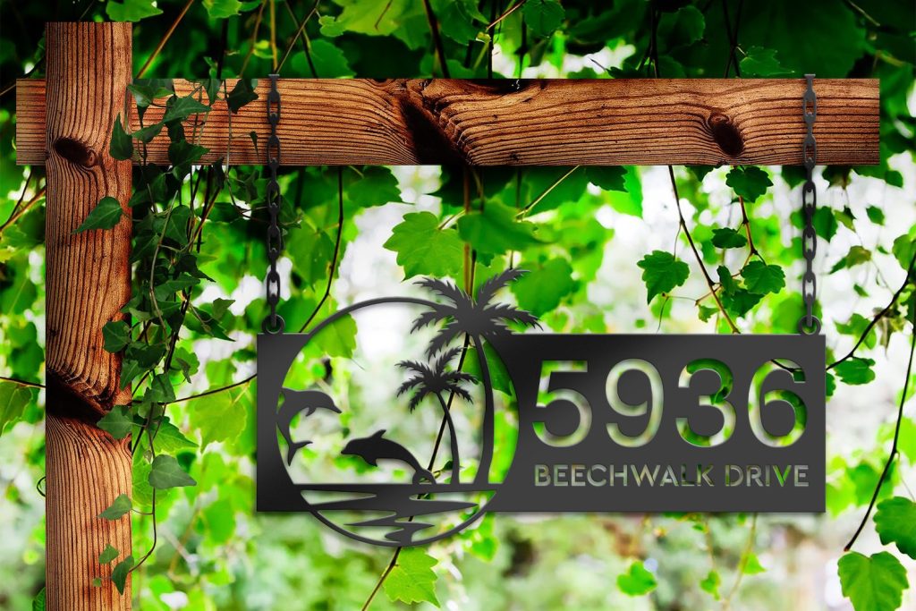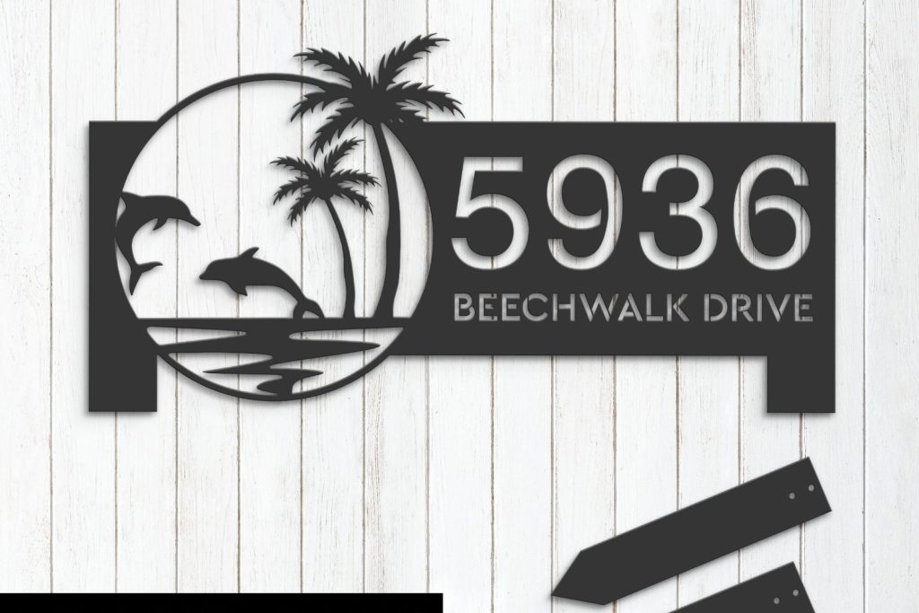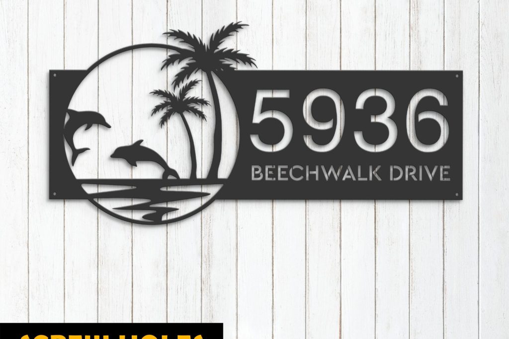 Personalized Dolphins and Palm Trees Metal Address Sign