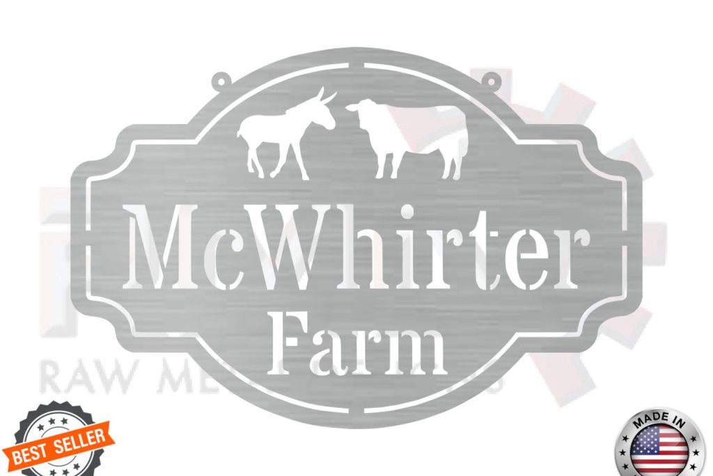 Our Personalized Farm Metal Sign is made out of 14 gauge 100% USA steel and can be powder coated front and back for the HIGHEST QUALITY!