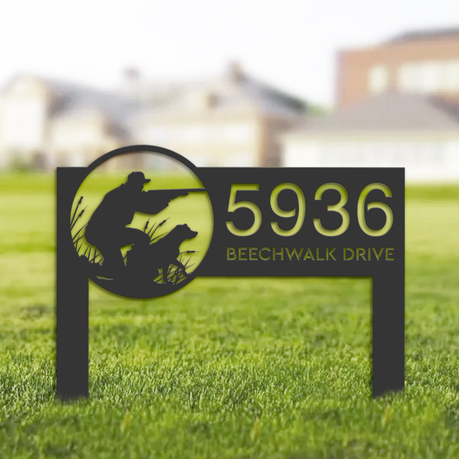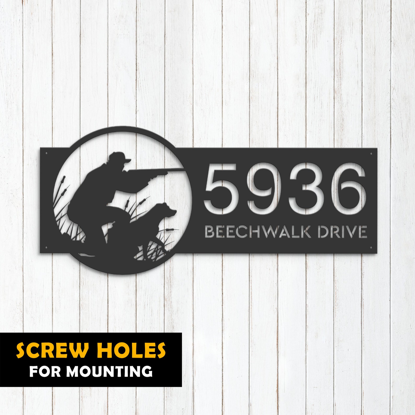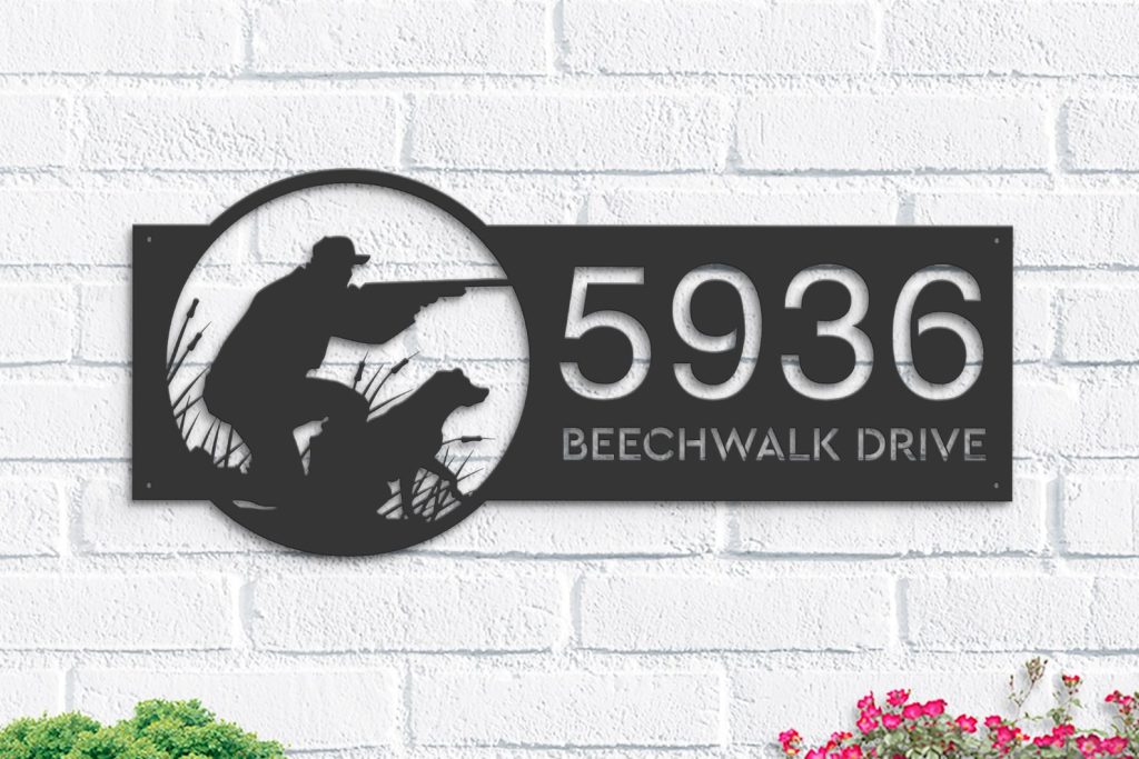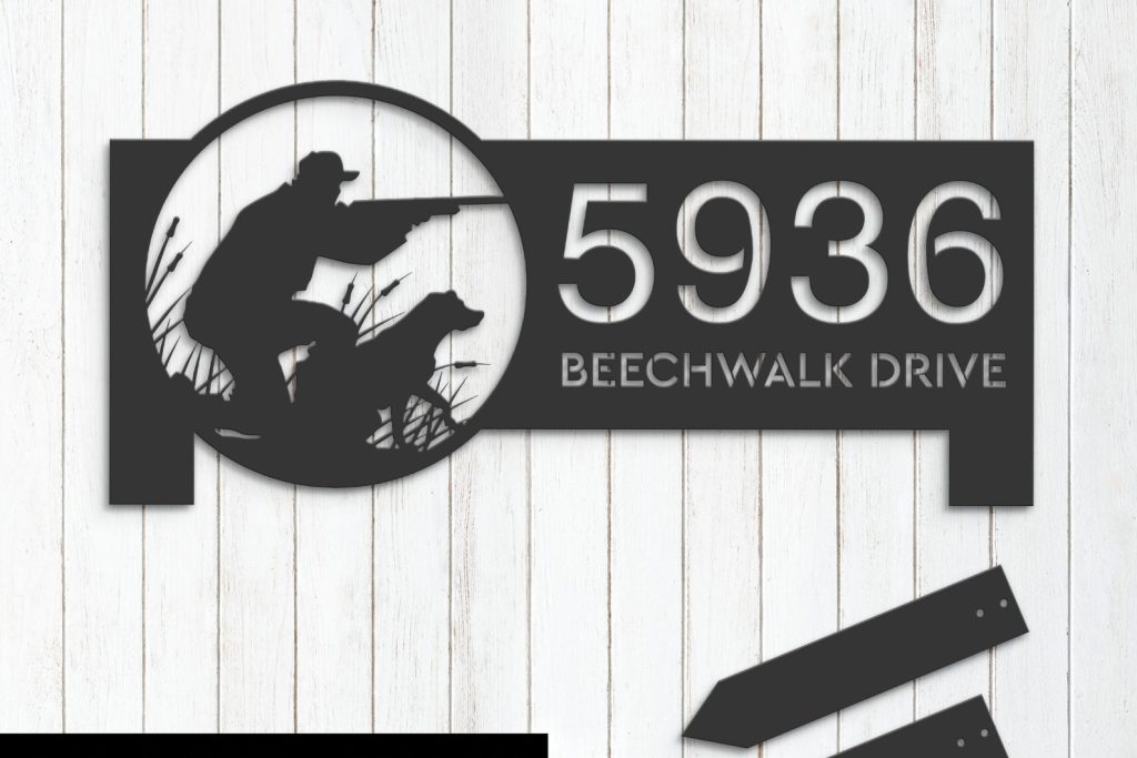 Personalized Duck Hunting Metal Address Sign – Hunter and Dog Yard Plaque