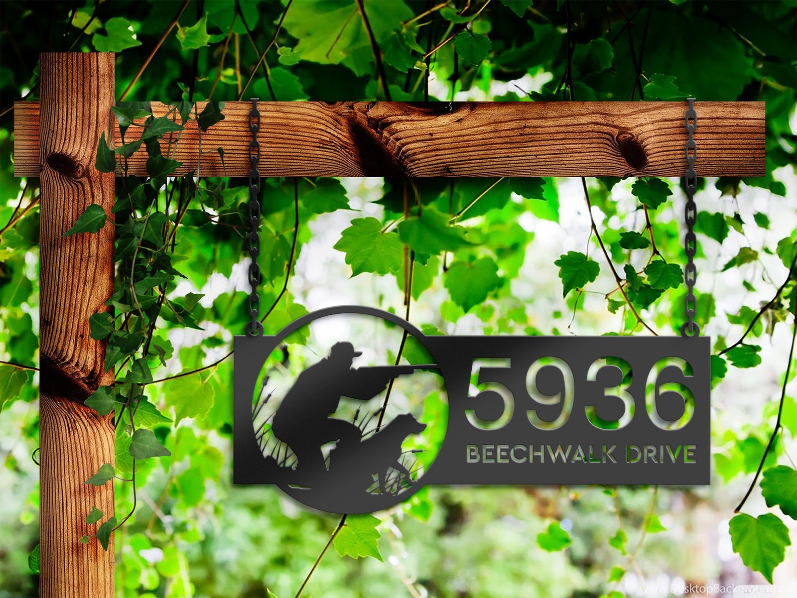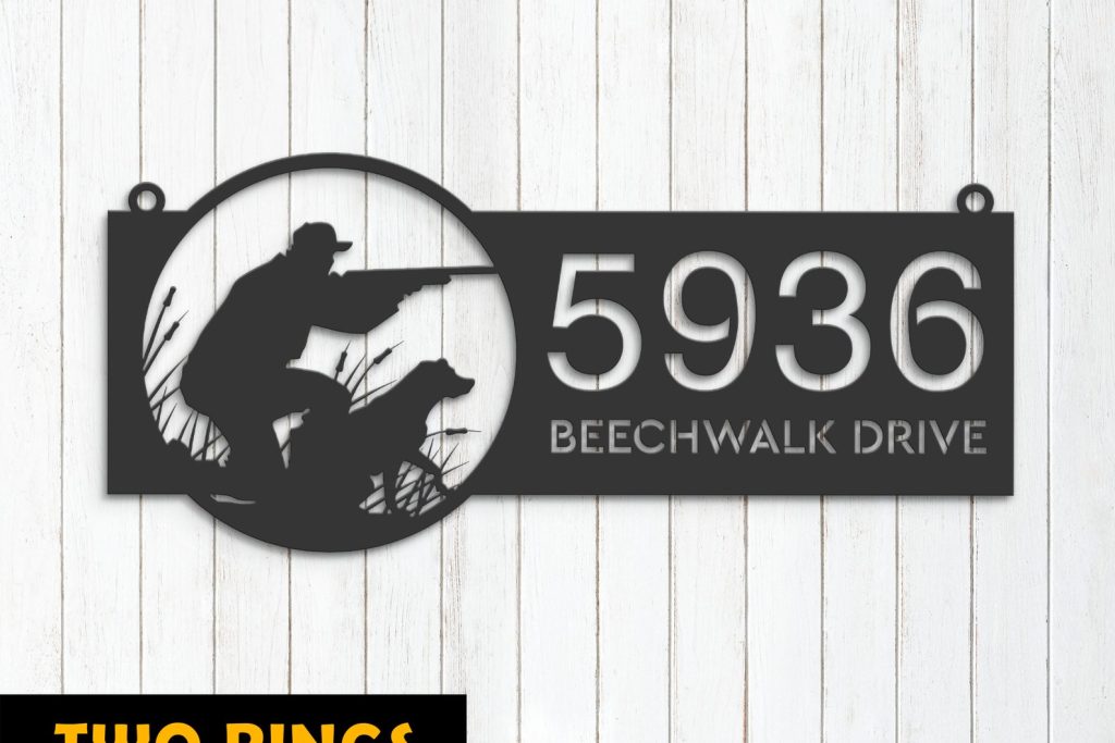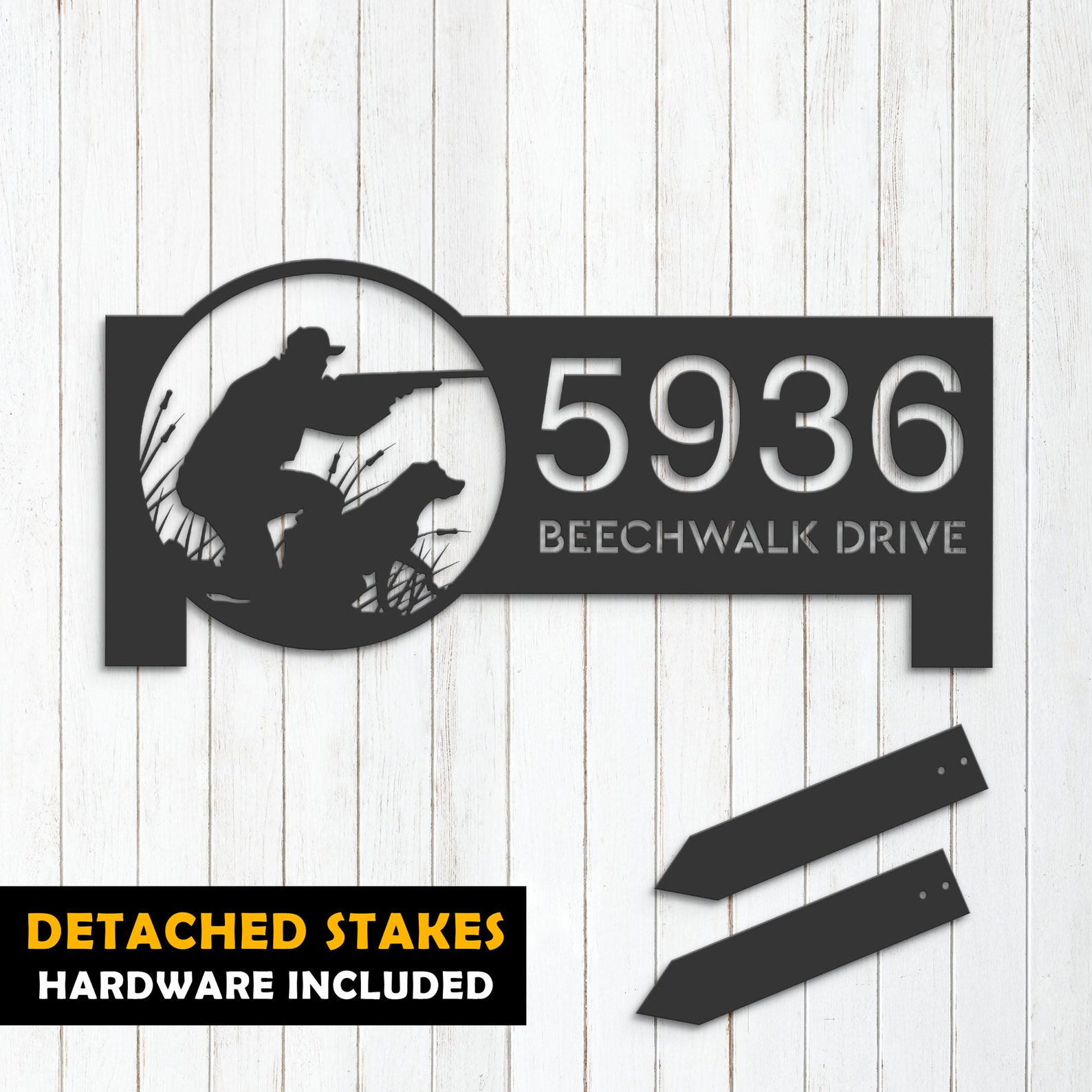 Personalized Duck Hunting Metal Address Sign – Hunter and Dog Yard Plaque