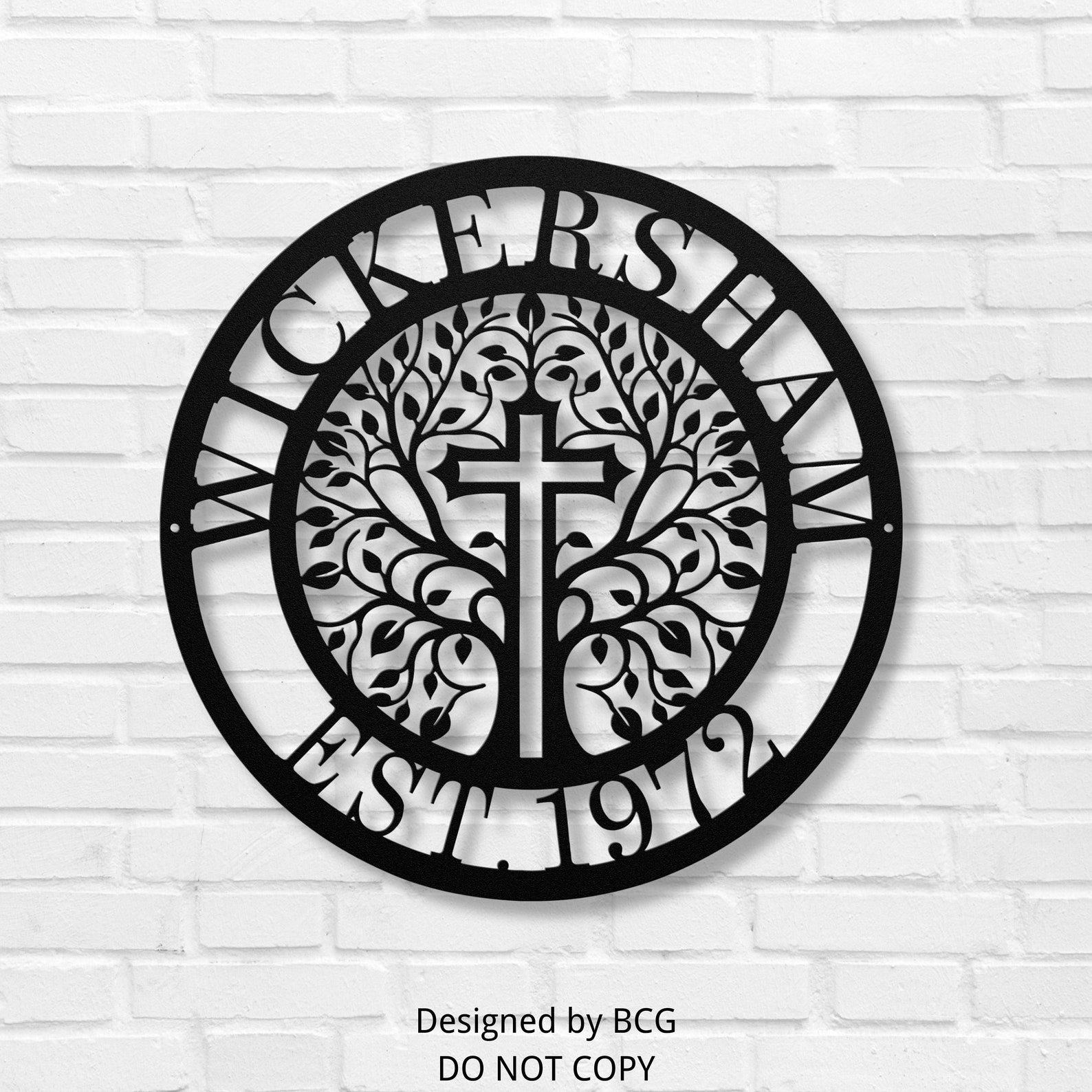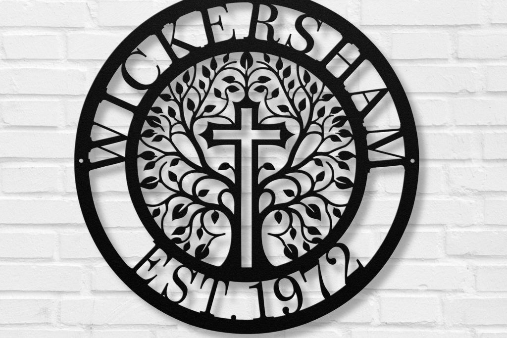 Personalized Family/Business Name Metal Art Sign with a Cross Custom EST Home Decor Housewarming Wedding Anniversary Christian gifts. Designed by BCG, DO NOT COPY.
