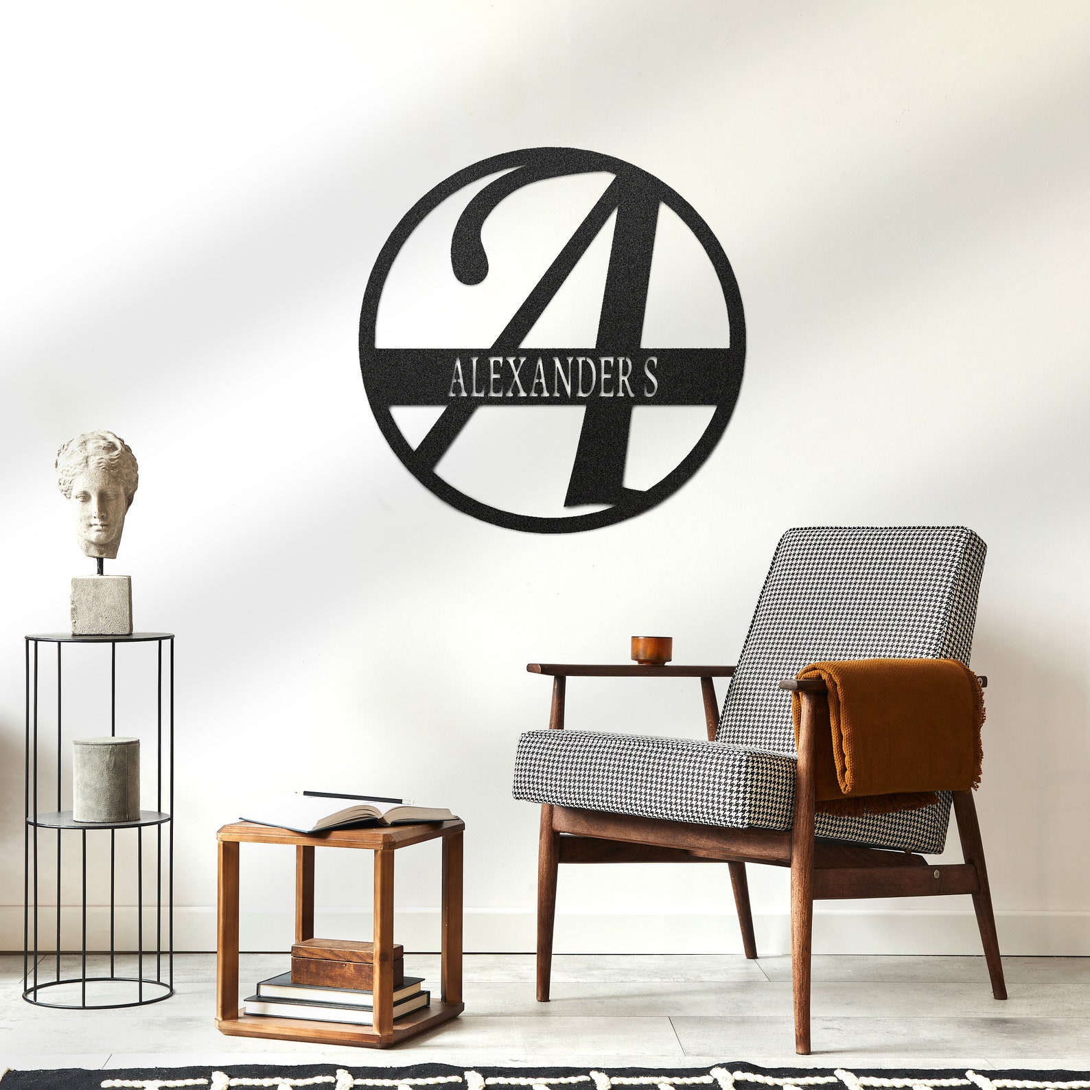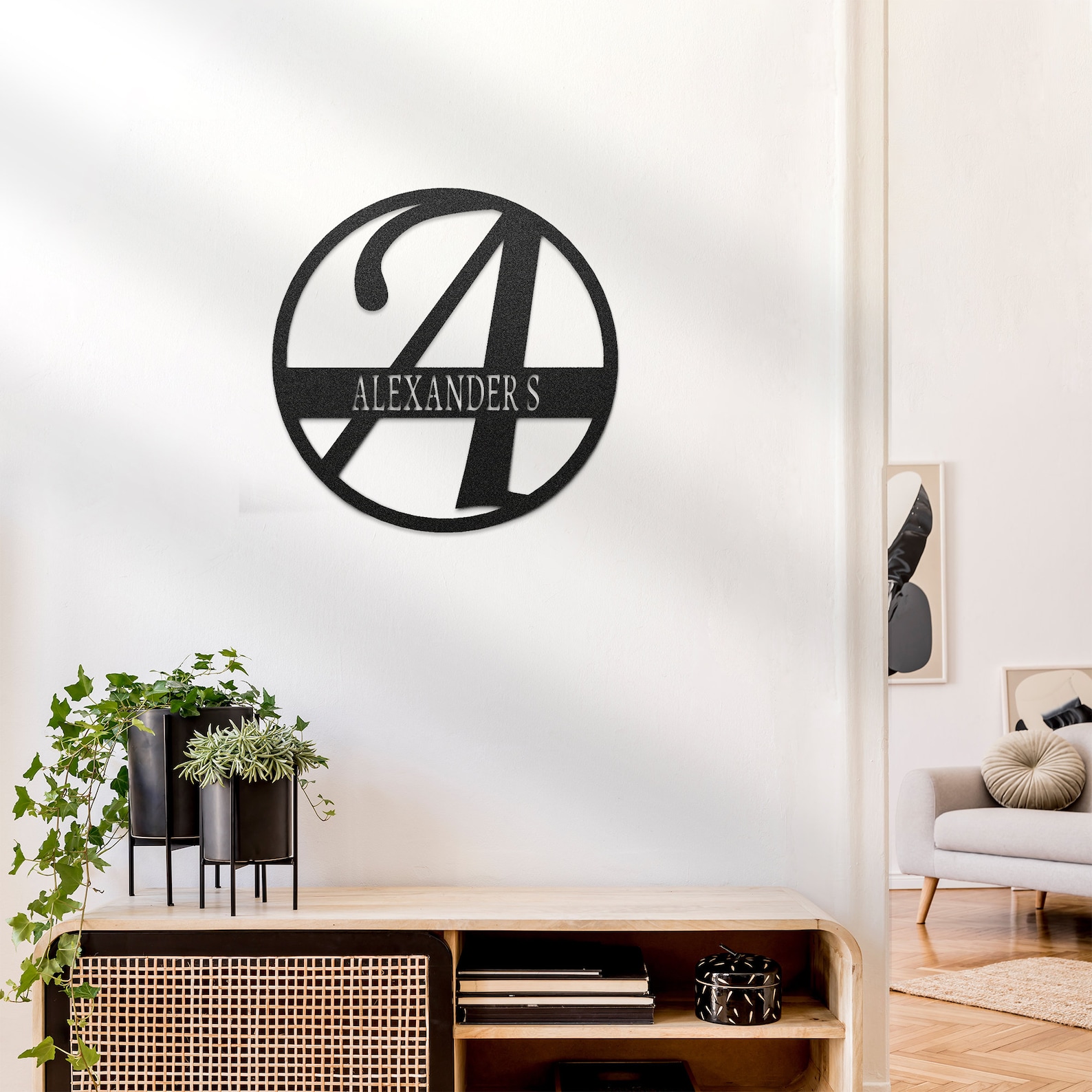 – This beautiful Personalized Family Name Metal Sign features a name and initial for you to proudly display wherever you9;d like! Available in multiple sizes and colors. Laser cut from steel. Item does not come with mounting hardware.