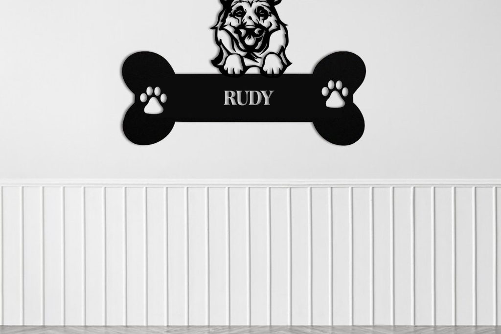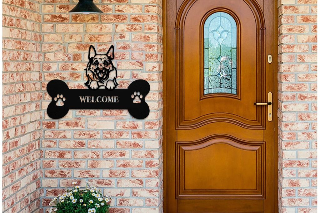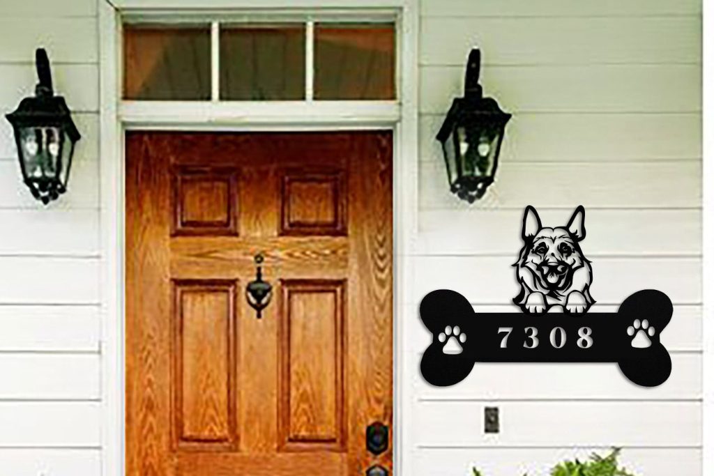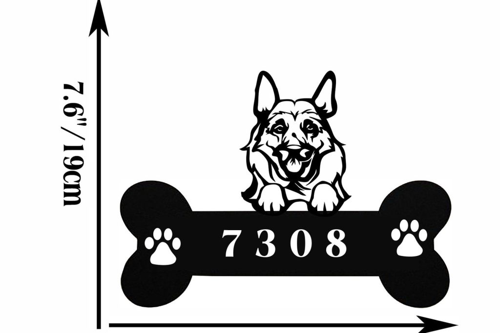 Horizontal Dog Silhouette Address Sign. Made with 14 gauge American made steel and powder coat to help prevent rust and discoloration. Made from high-quality metal, our custom address sign is durable and weather-resistant, ensuring that it will last for years to come. The sign can be customized with your address or any other text that you choose, making it a truly unique and personalized addition to your property. It can be used as a family property to last for generations.