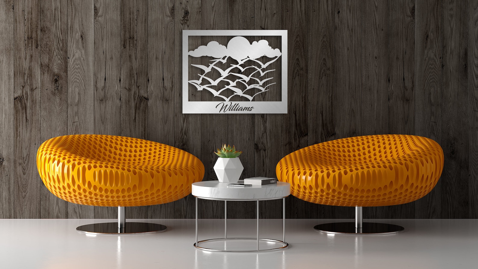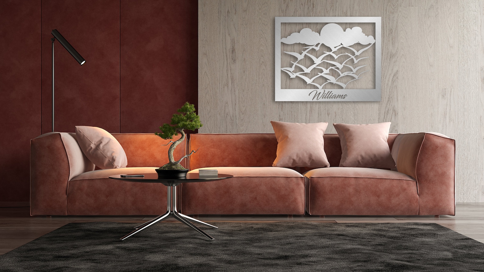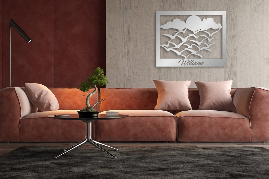 Be the first to review “Personalized Family Name Metal Wall Art – Birds & Clouds Decor”