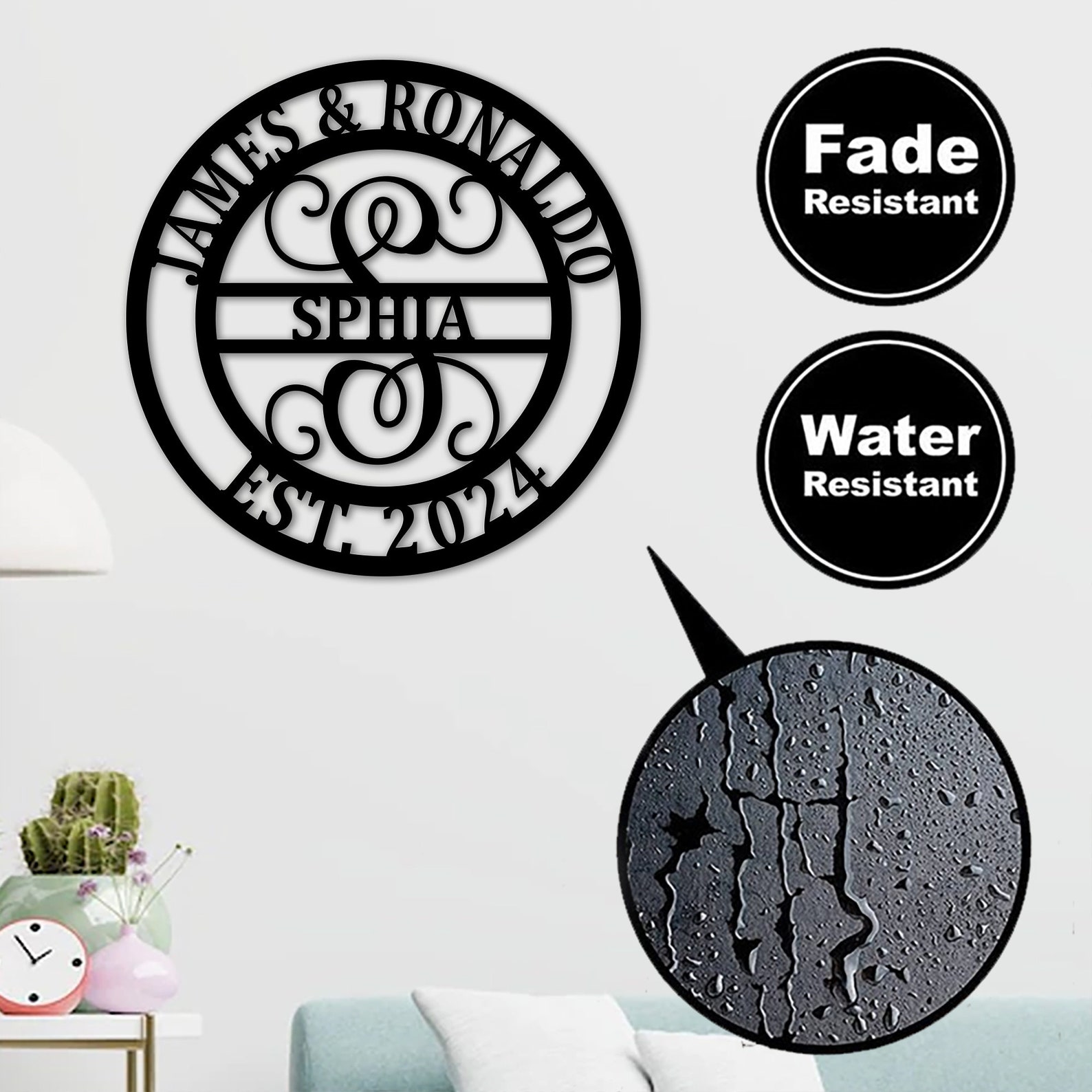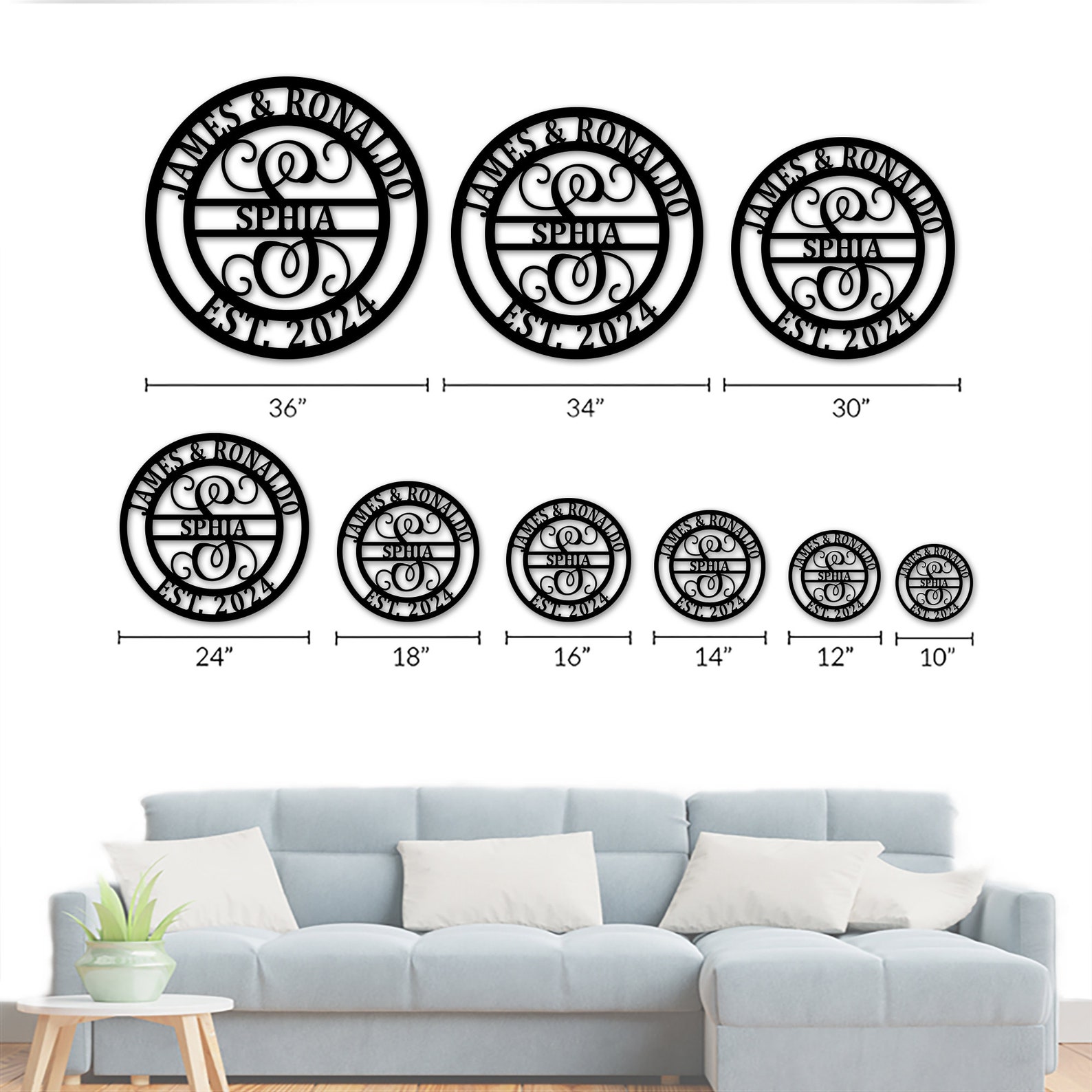 Size Variety: Available in 12", 16", 18", 24", 30", 34" and 36". This surname metal logo is suitable for different people and different occasions. Such as home front door and living room, wedding parties, housewarming events, etc.