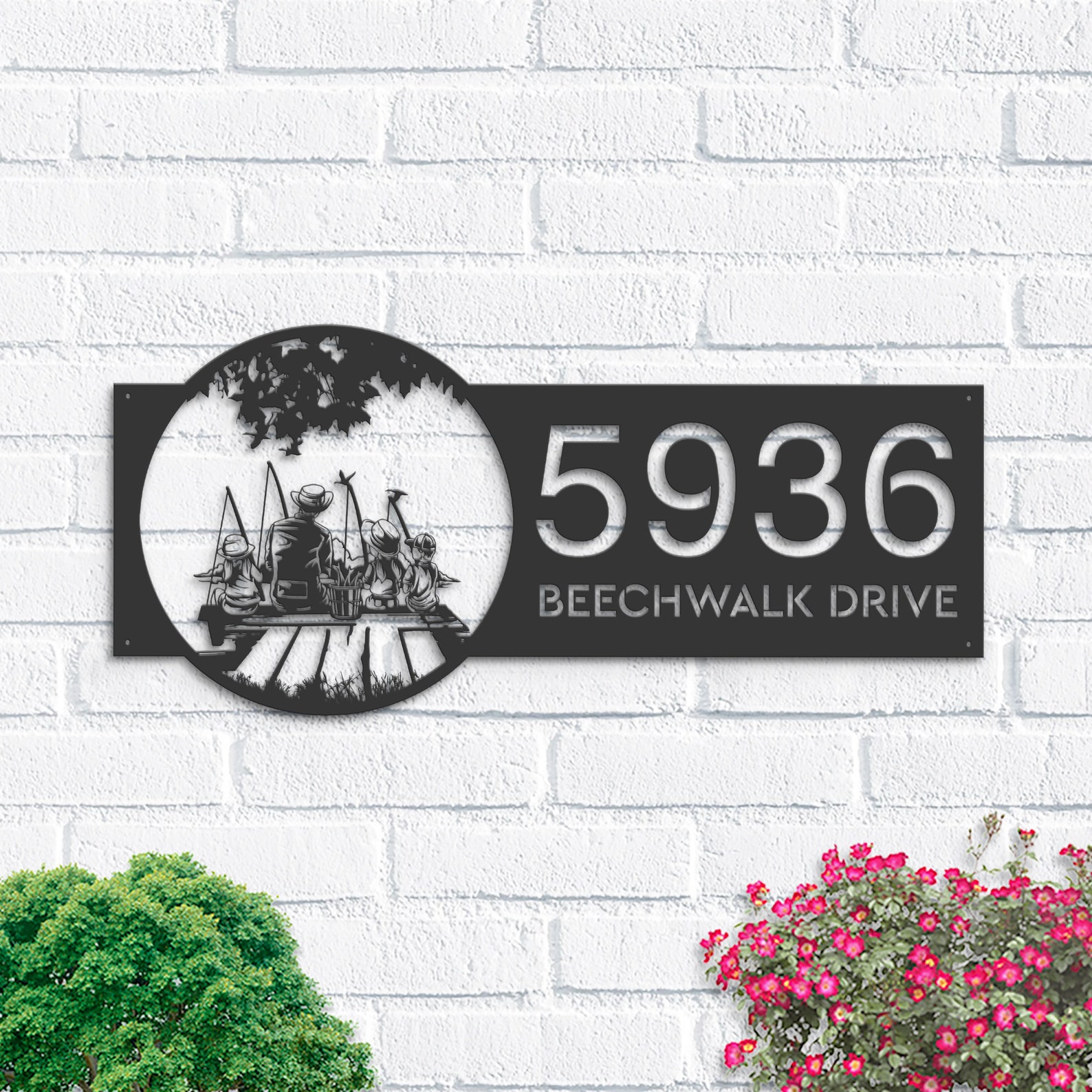 Be the first to review “Personalized Fishing Metal Address Sign with LED Lights – Dad and Kids”