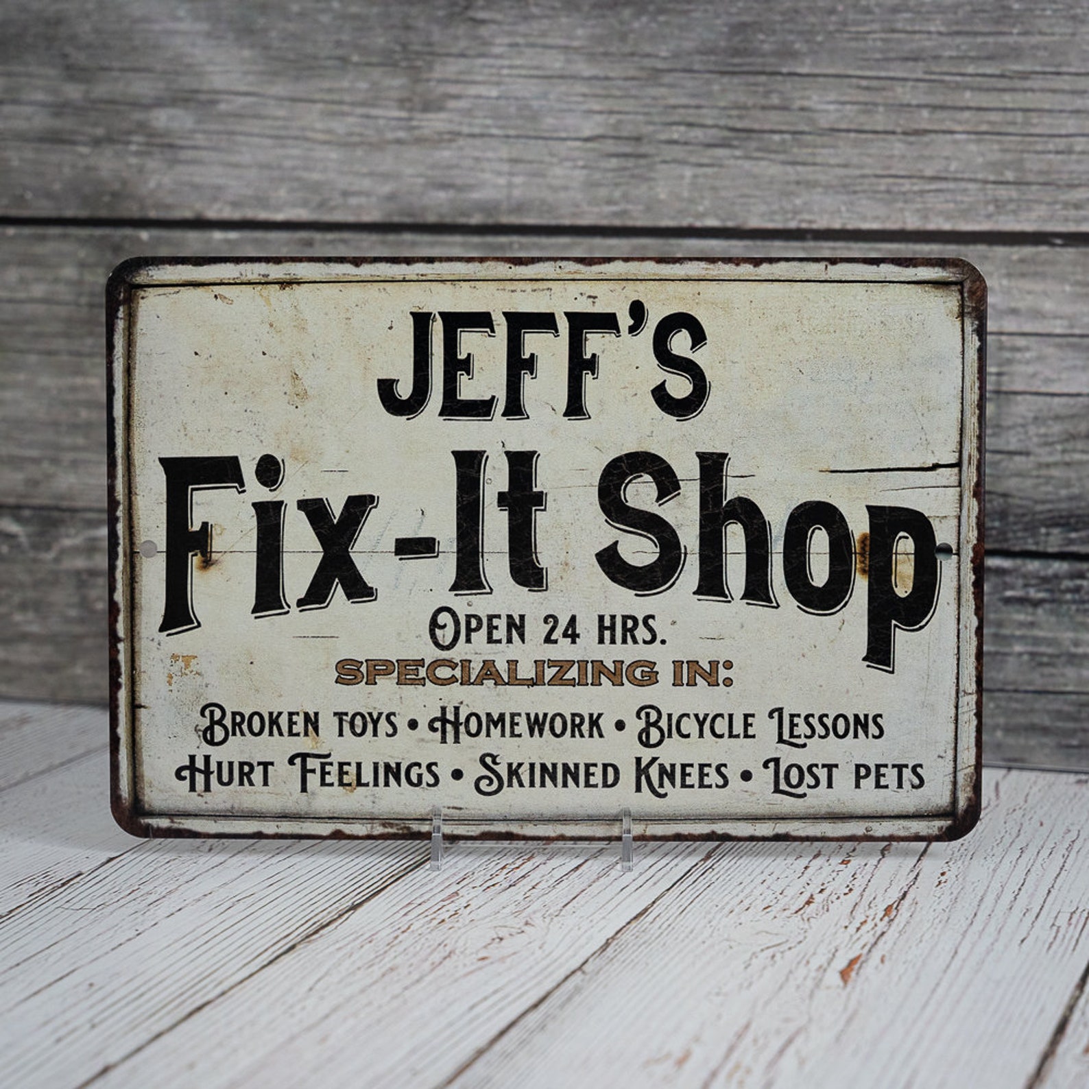 Be the first to review “Personalized Fix-it Shop Metal Sign”