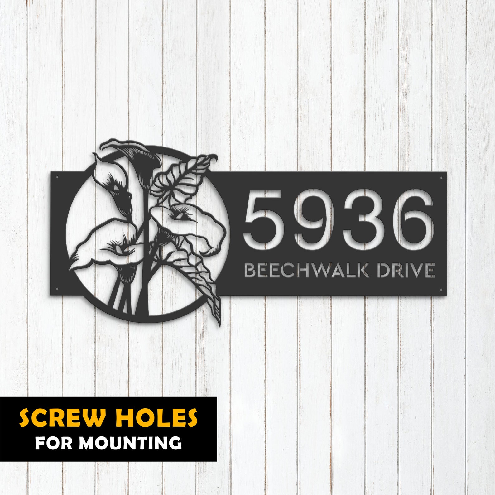 Introducing our custom metal address sign, available in 5 size options and 4 different styles to suit your individual needs. With our address sign, you can make a statement while also ensuring that visitors can easily locate your home or business.
