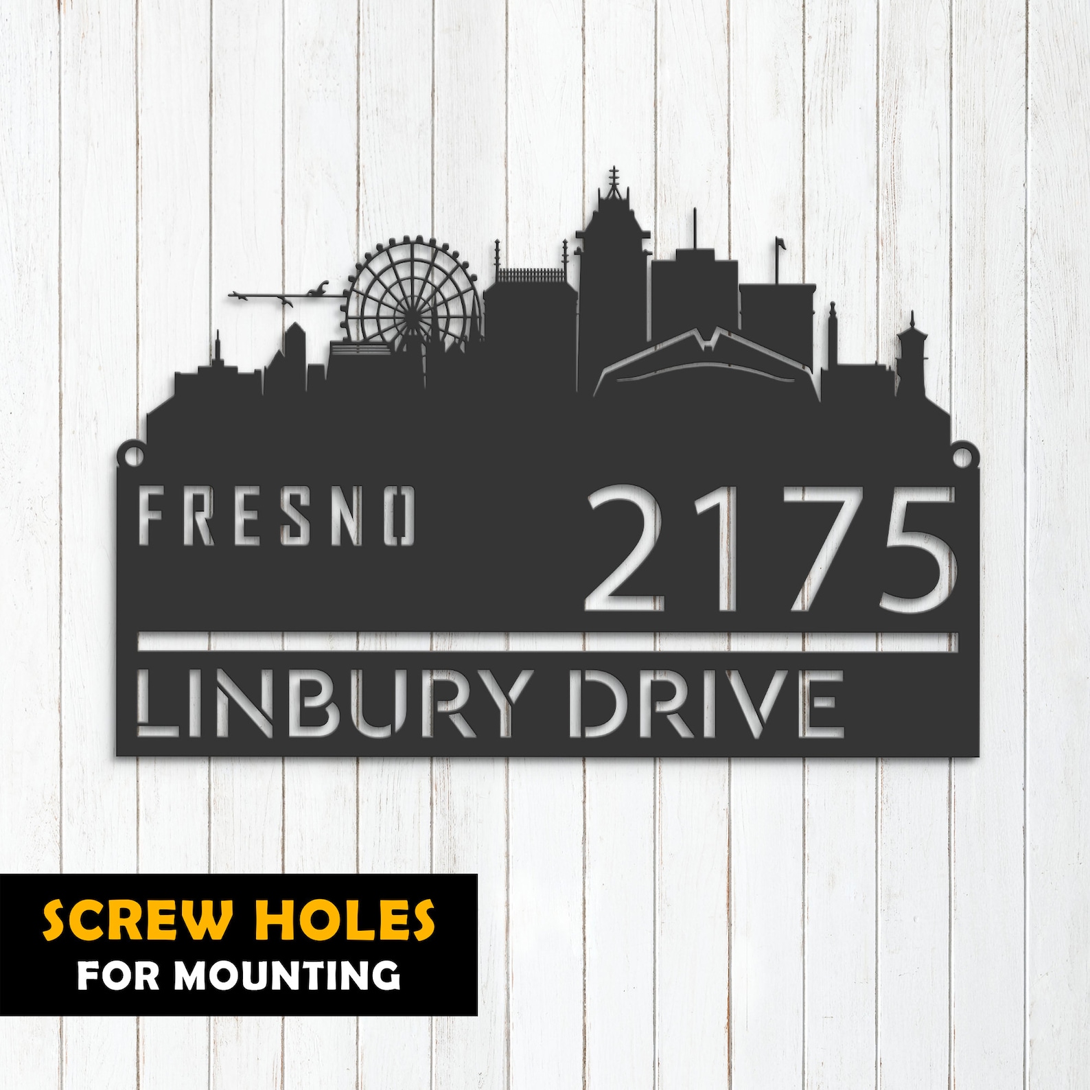 Be the first to review “Personalized Fresno Skyline Metal Address Sign”
