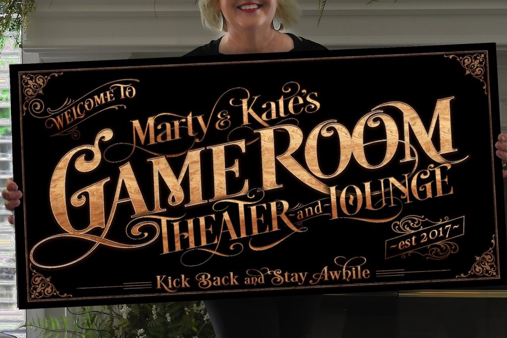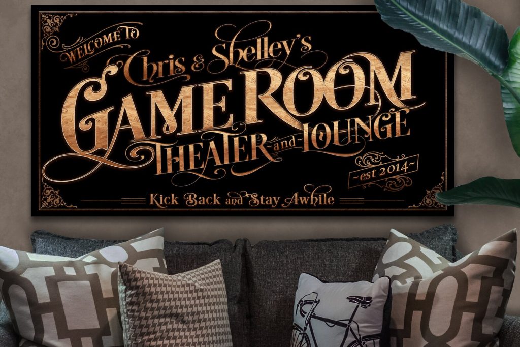 Be the first to review “Personalized Game Room Sign – Metal or Canvas, Custom Theater Sign”