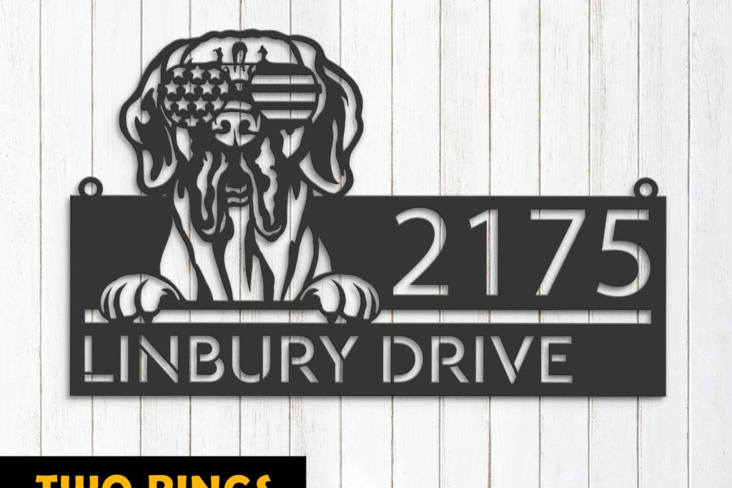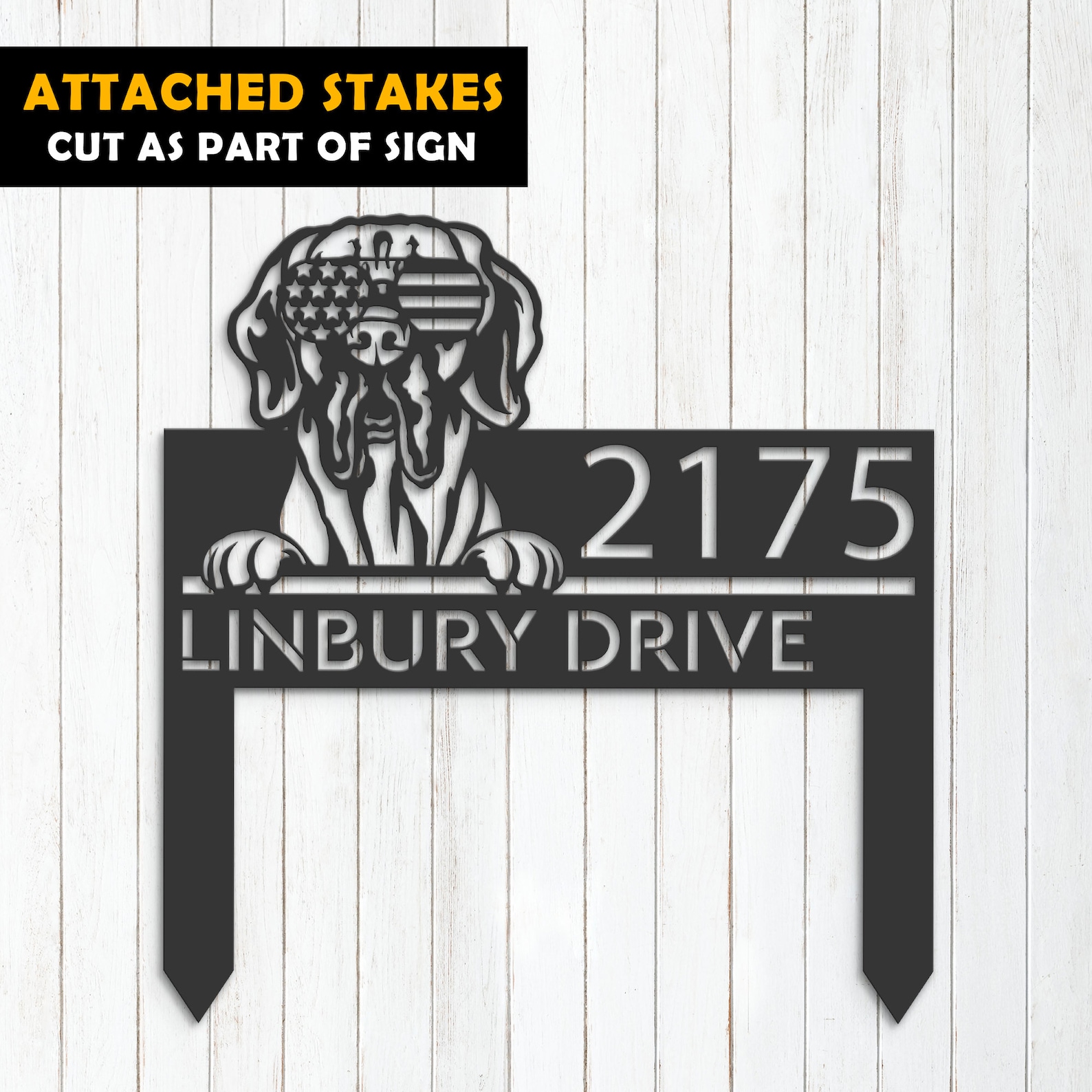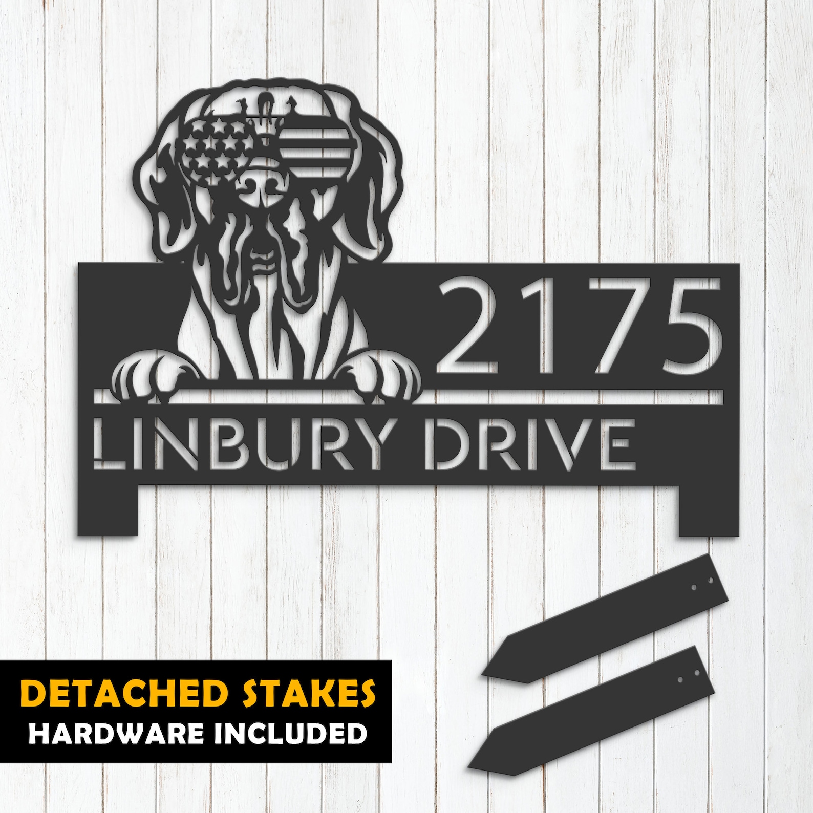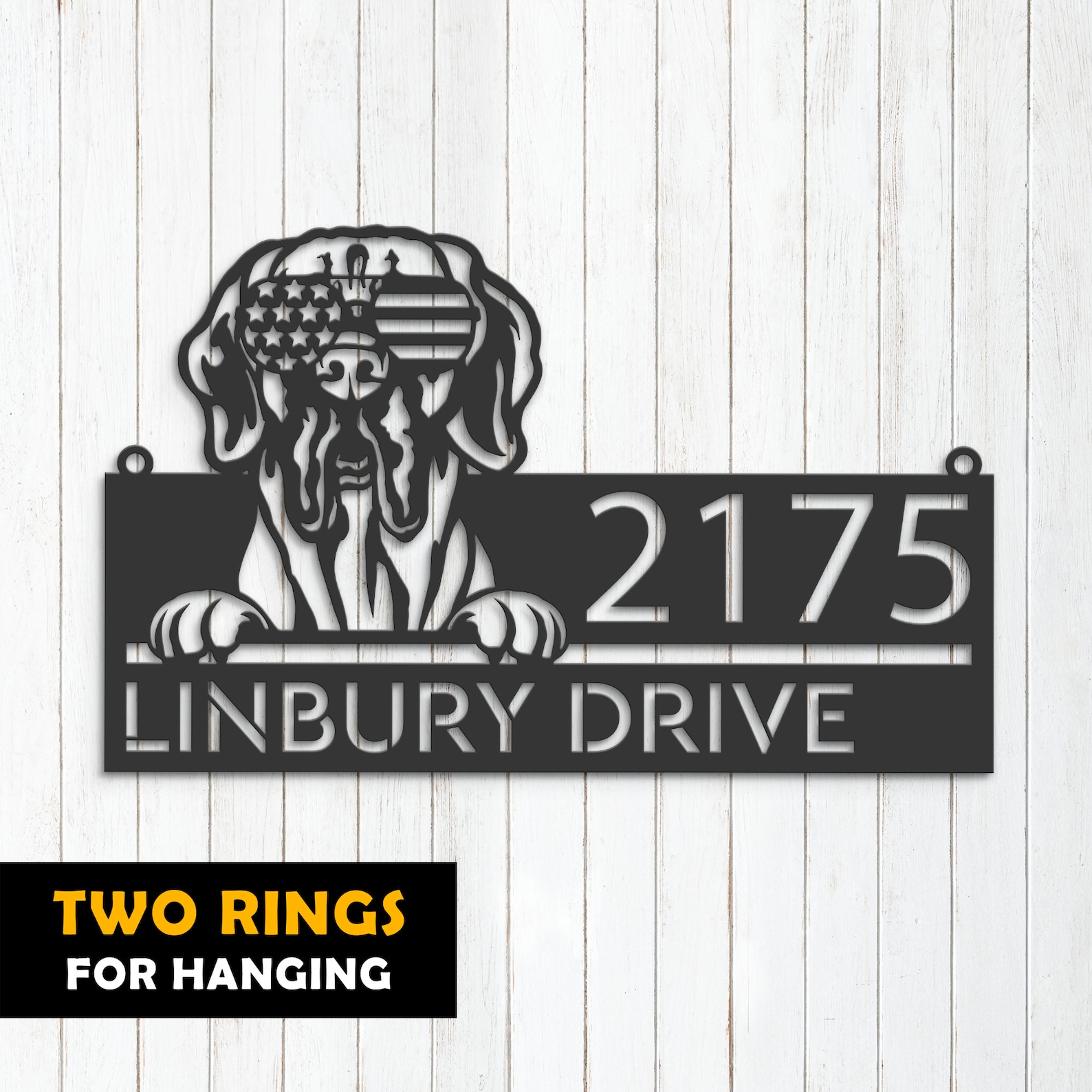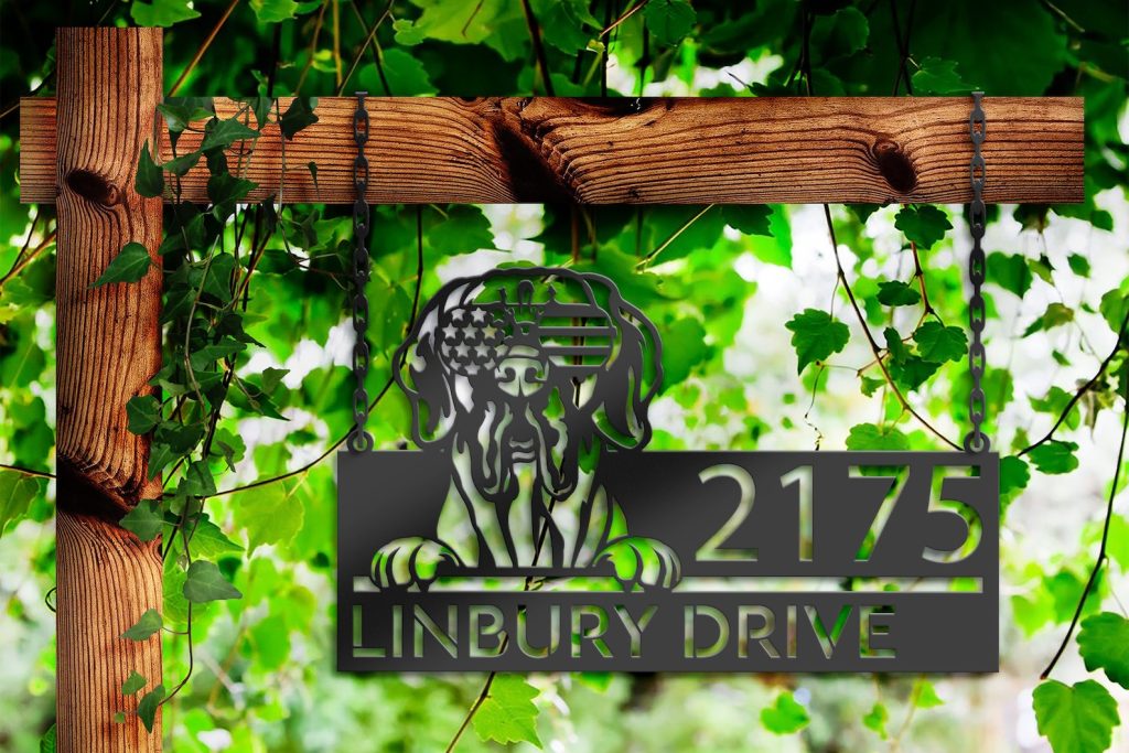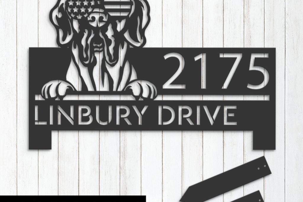 Personalized Great Dane Dog Metal Address Sign – US Flag Glasses