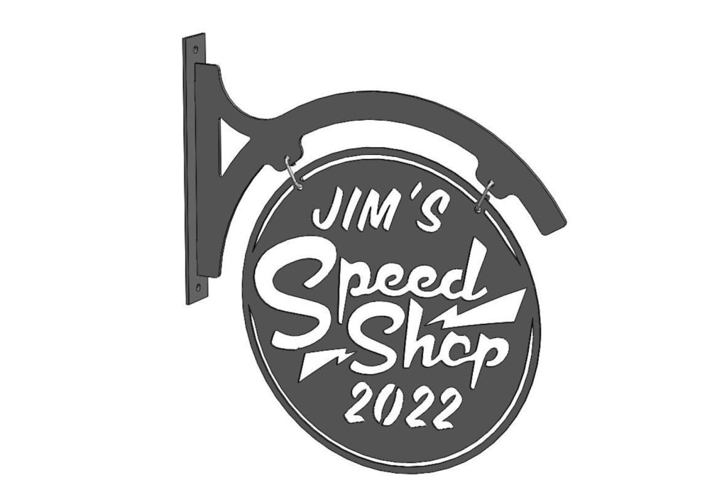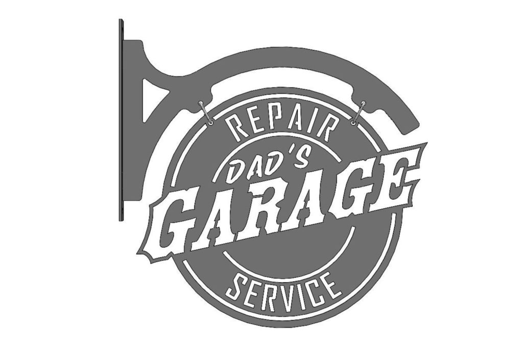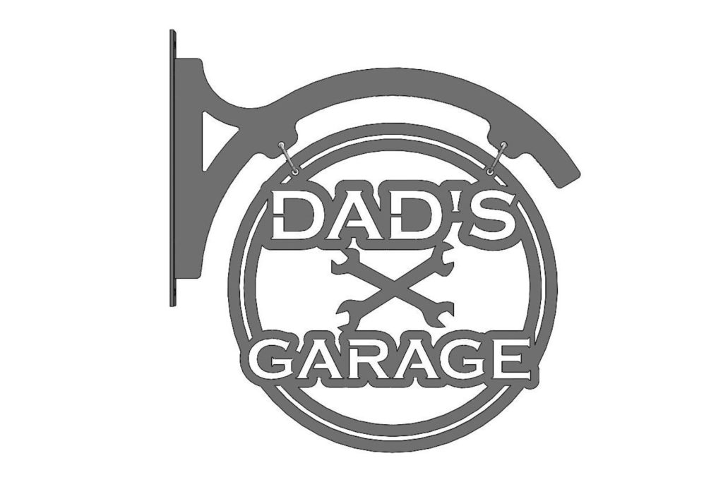 Personalized hanging metal sign for your garage, shop, or mancave.