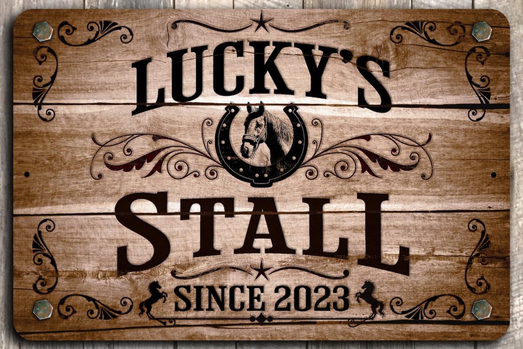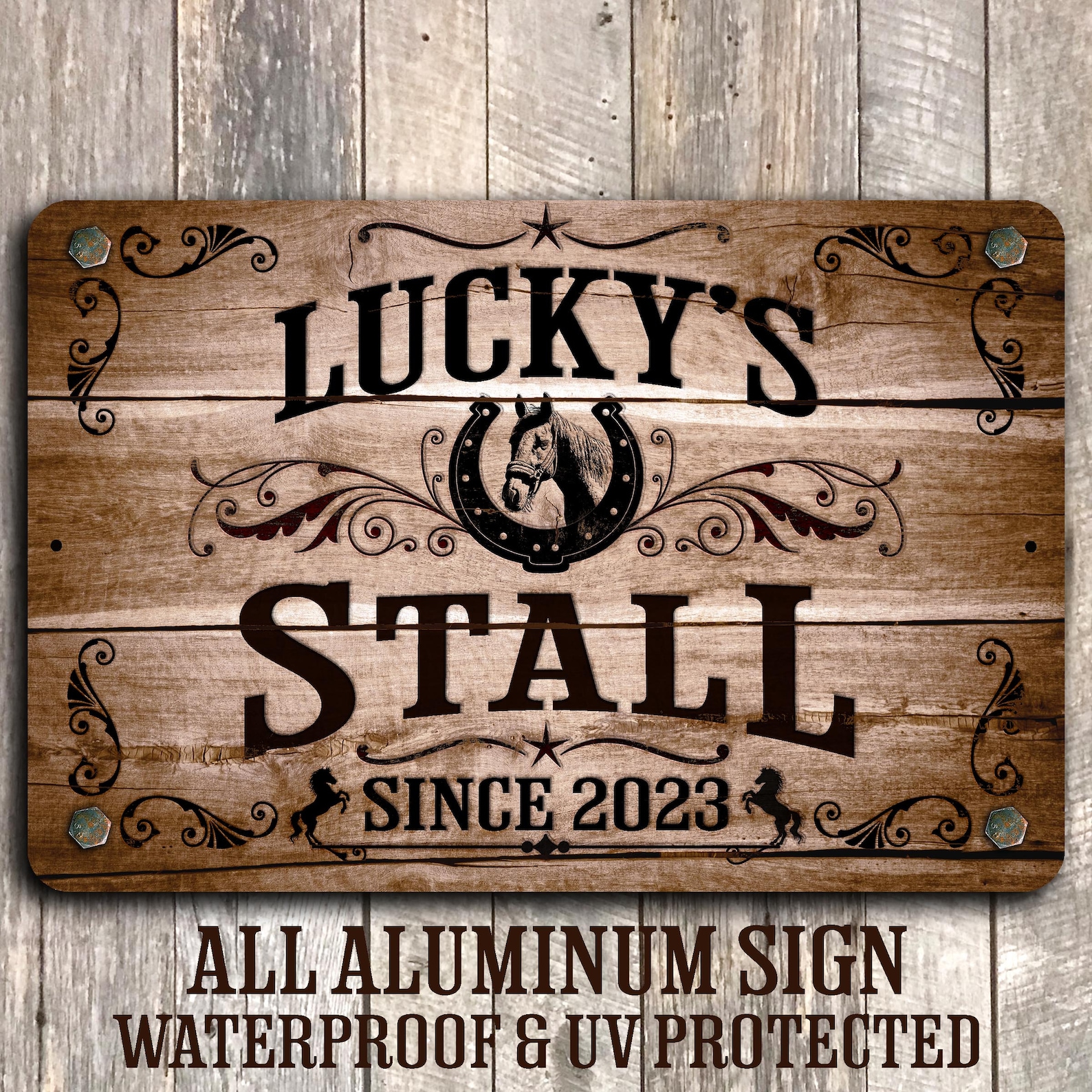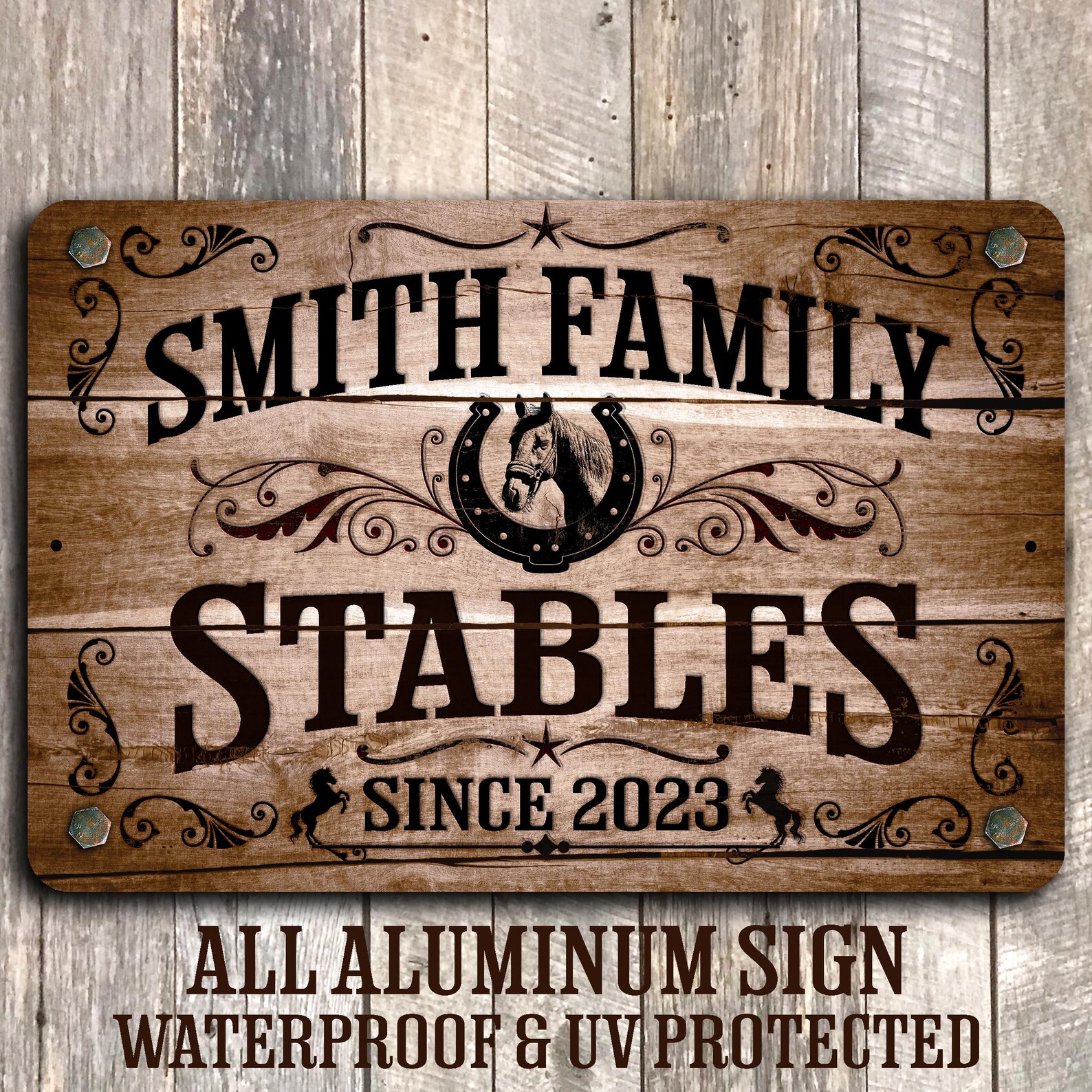 Personalize your Horse Farm or stable area with our personalized vintage design metal sign.