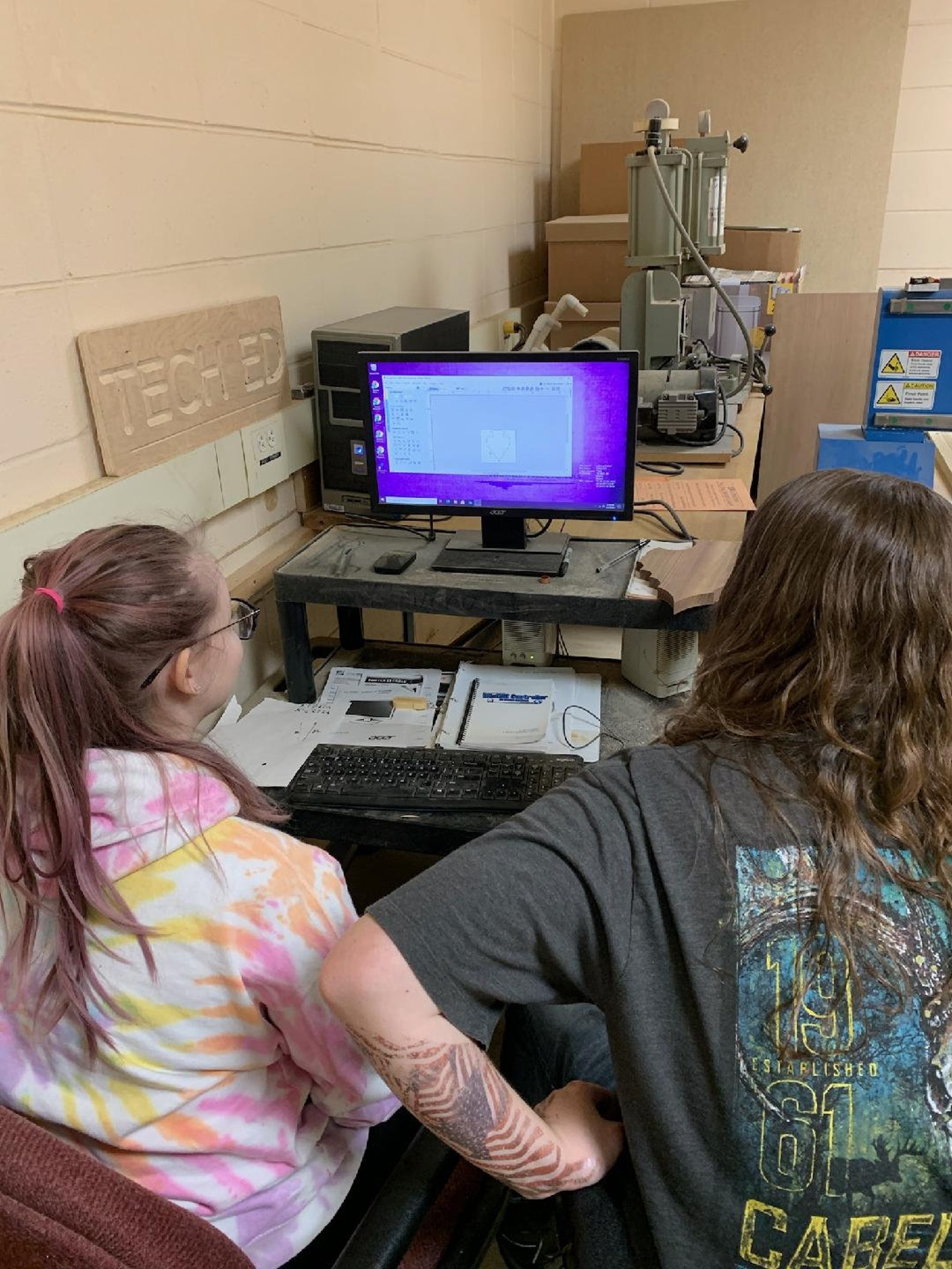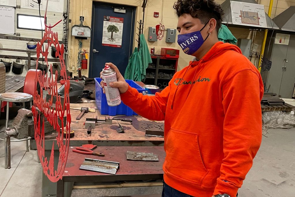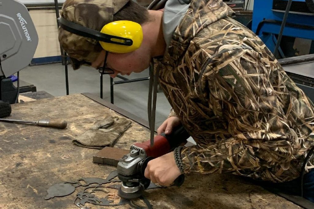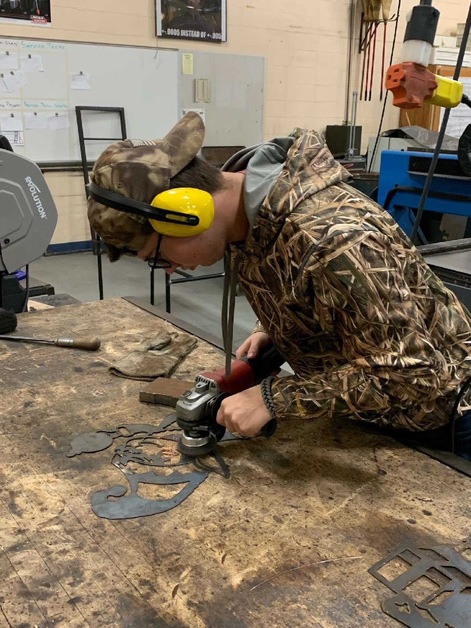 Plasma cut out of 16 gauge steel sheet metal by high school manufacturing class.