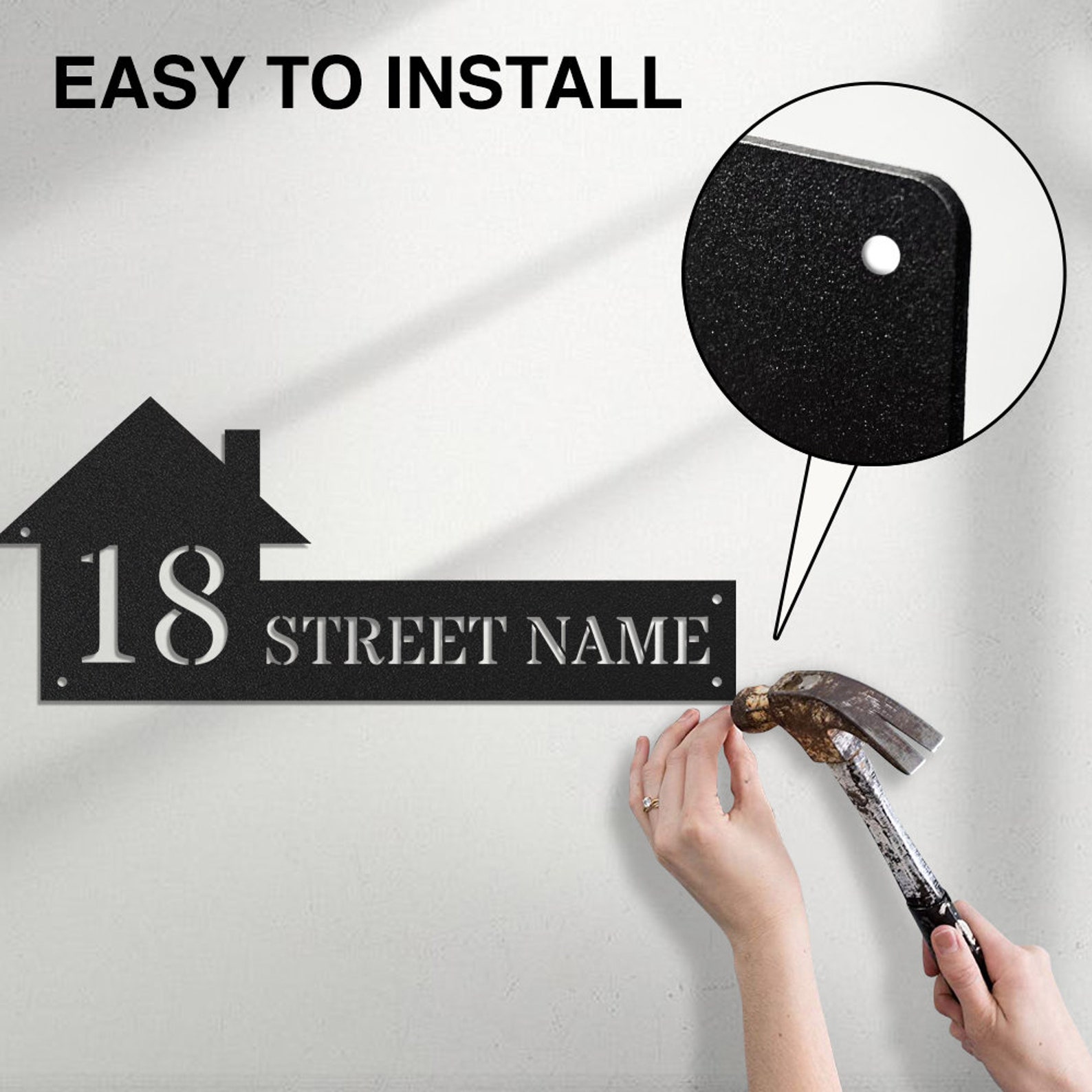 asy to hang — There are holes for you to hang metal signs. You just need to find a suitable place and position it with a hammer. The design of two or more holes can make the name sign more stable, dont worry about it falling or something. The nut can hide the screw without affecting its beauty.