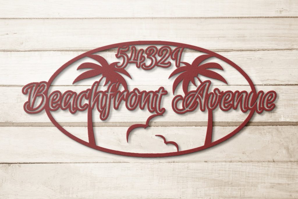 Be the first to review “Personalized House Number Metal Sign: Tropical Beach Style”