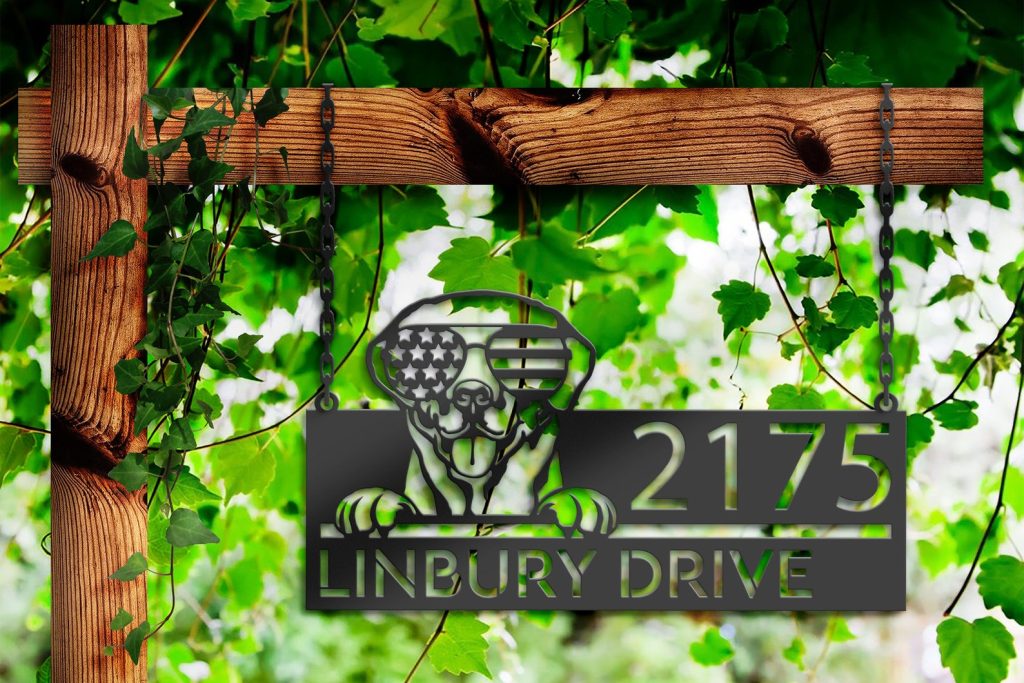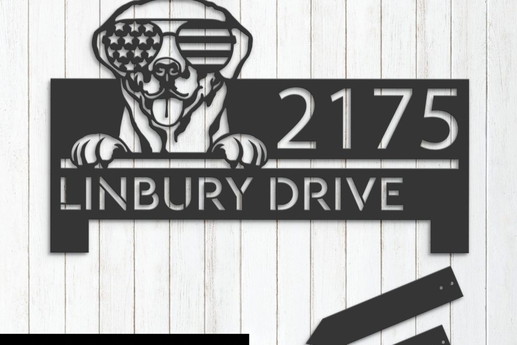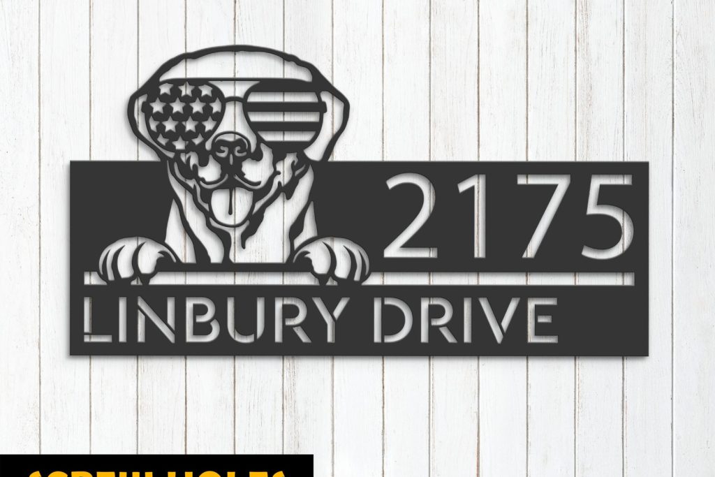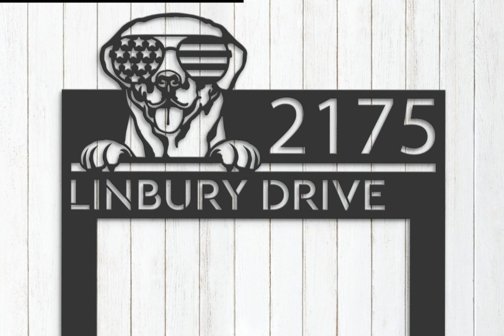 Be the first to review “Personalized Labrador Metal Address Sign – US Flag Glasses”