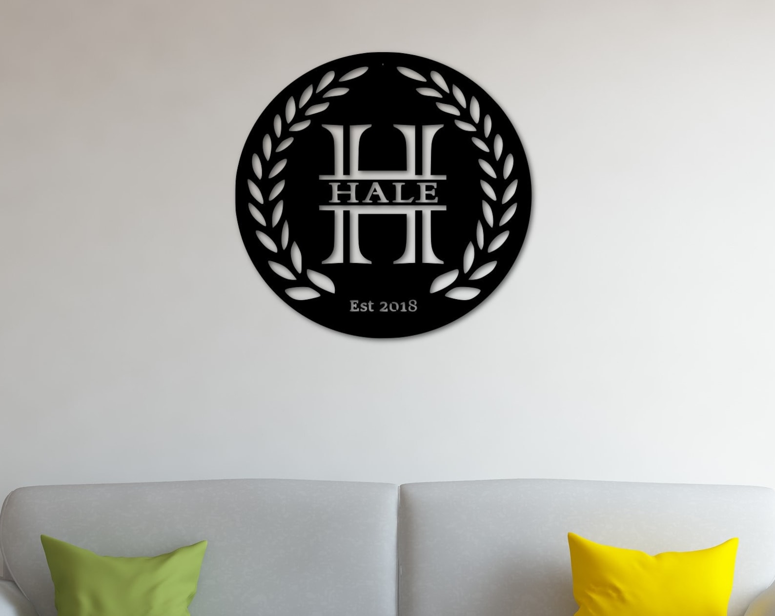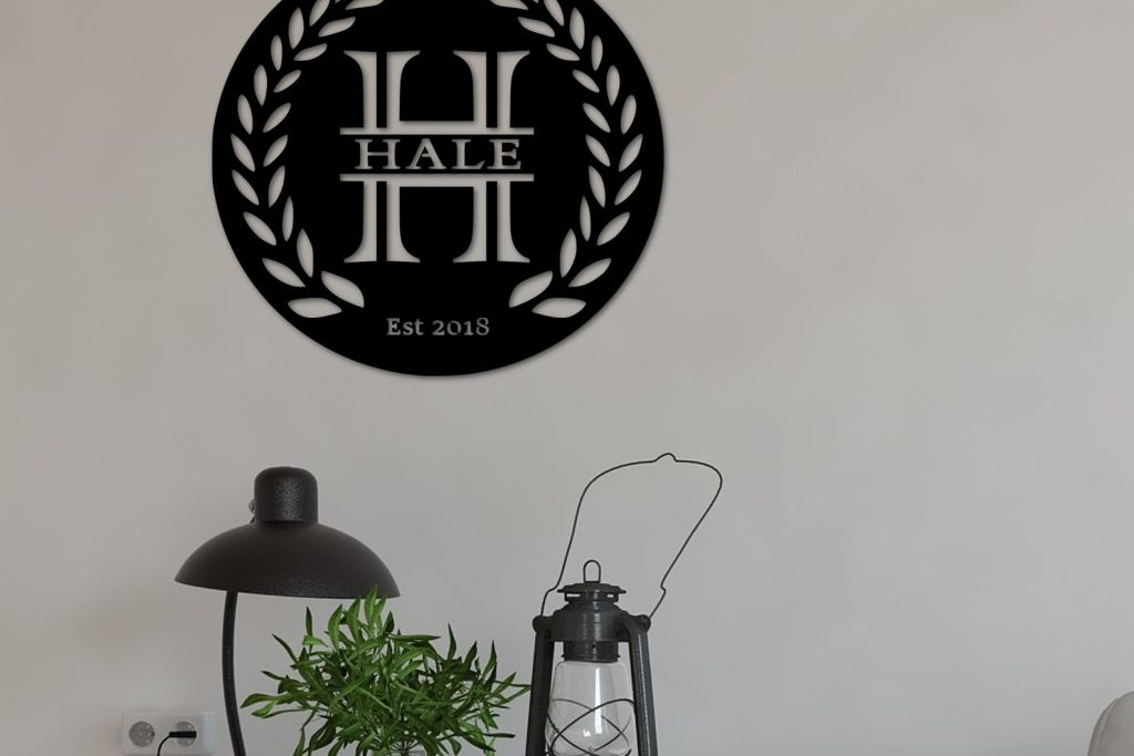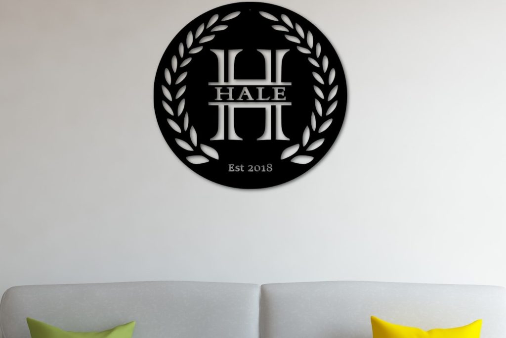 Personalized Laurel Branch Metal Last Name Sign