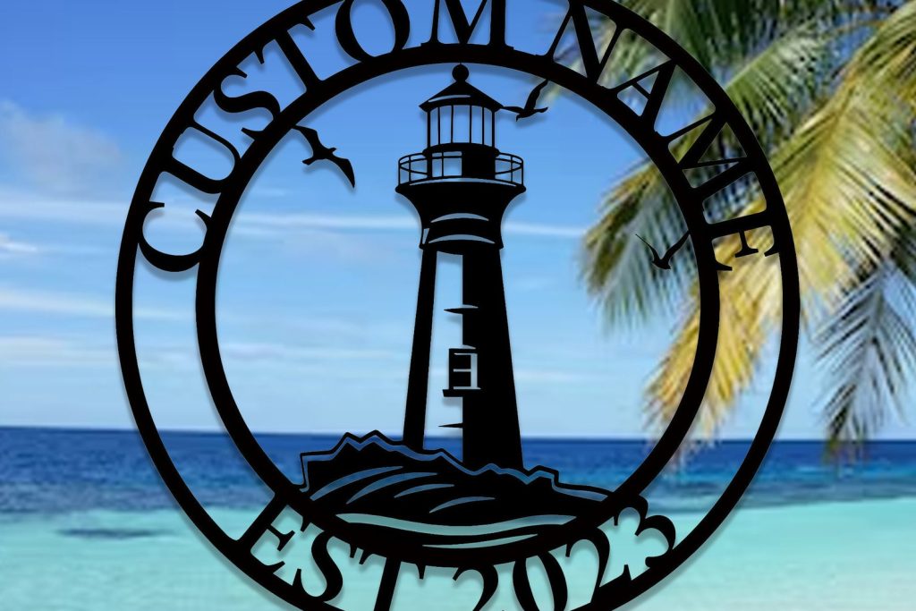 ***Personalized Lighthouse Metal Wall Art, Custom Lighthouse Metal Wall Sign, Lighthouse Name Sign, Beach House Sign, Lake Decor, 8-24 Inch***