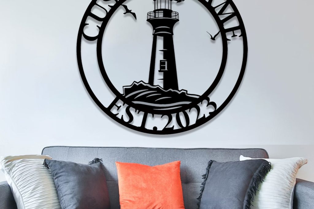 This personalized lighthouse metal wall art is all one of a kind to create a unique beach or lake themed decor.