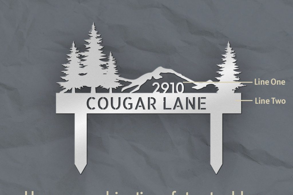 Elevate your outdoor space with our exquisite steel lawn address signs, seamlessly blending nature-inspired designs with functional elegance. At One Bungalow Lane, we take pride in our craftsmanship and personalized charm. Whether displaying your address, family name, or a combination of both, our signs infuse a unique touch into your abode.
