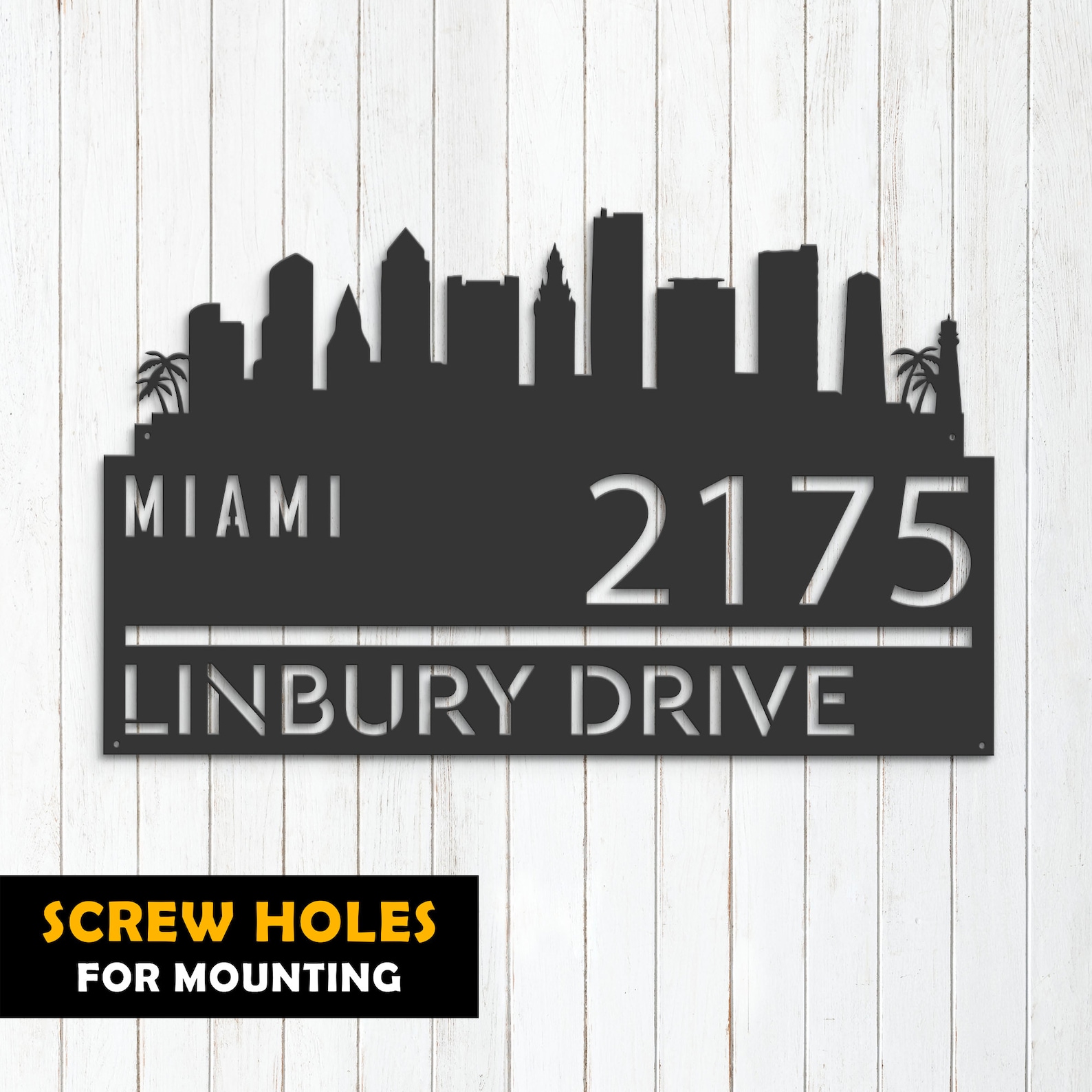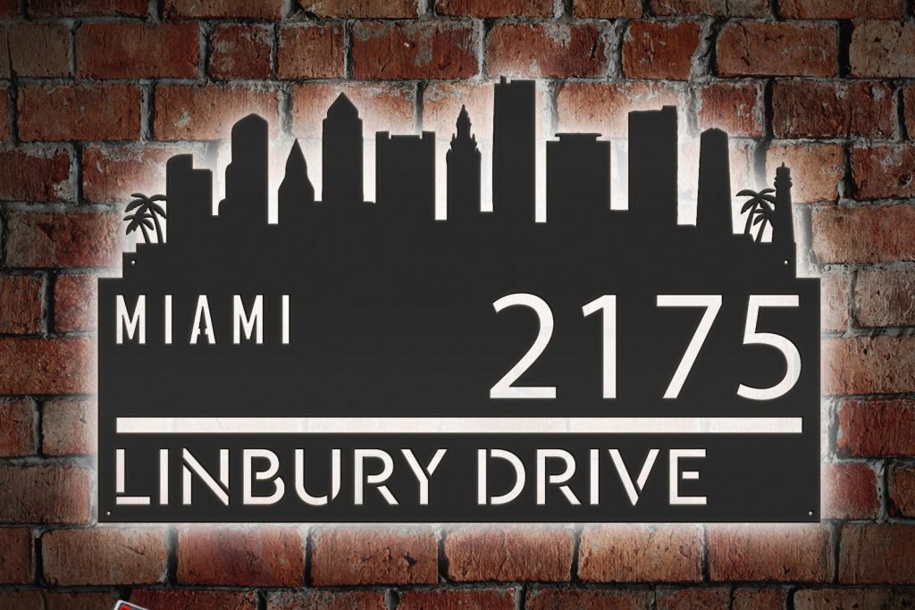 Be the first to review “Personalized Miami Skyline Metal Address Sign with LED Lights”