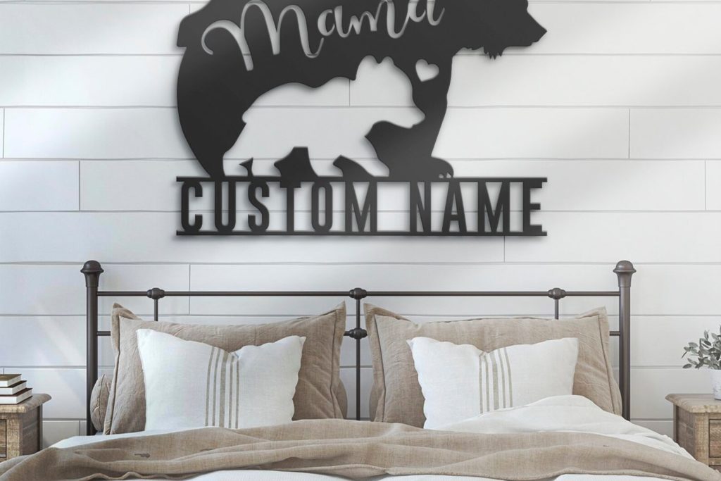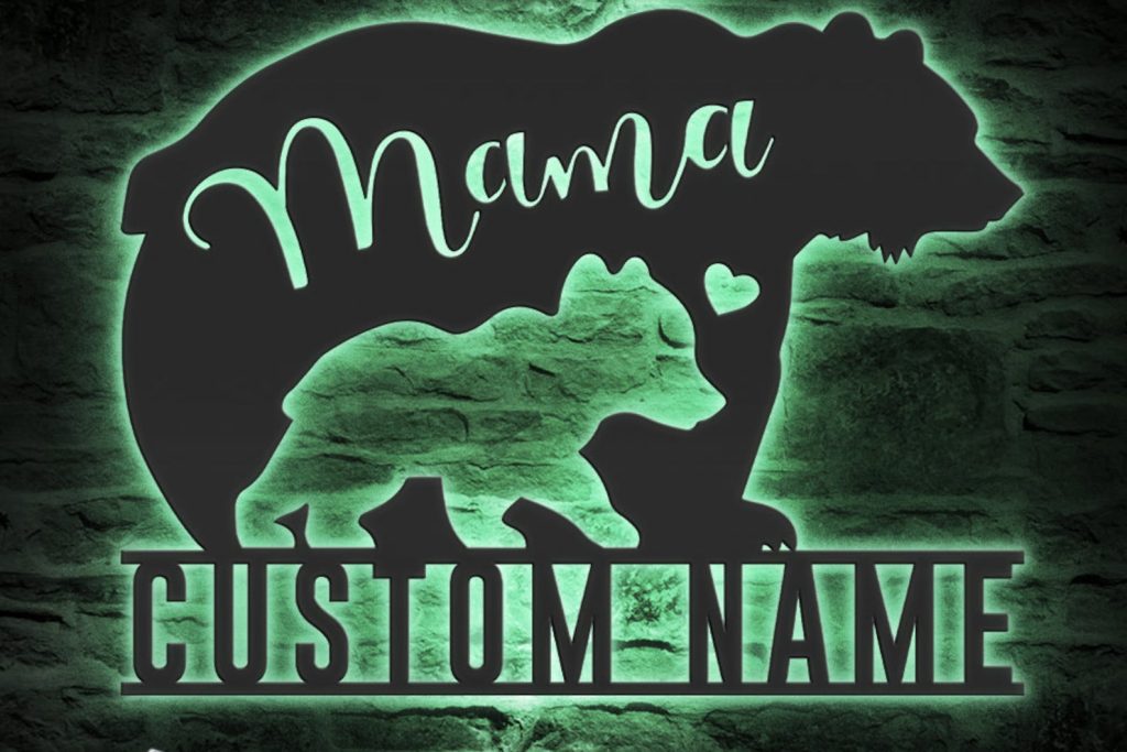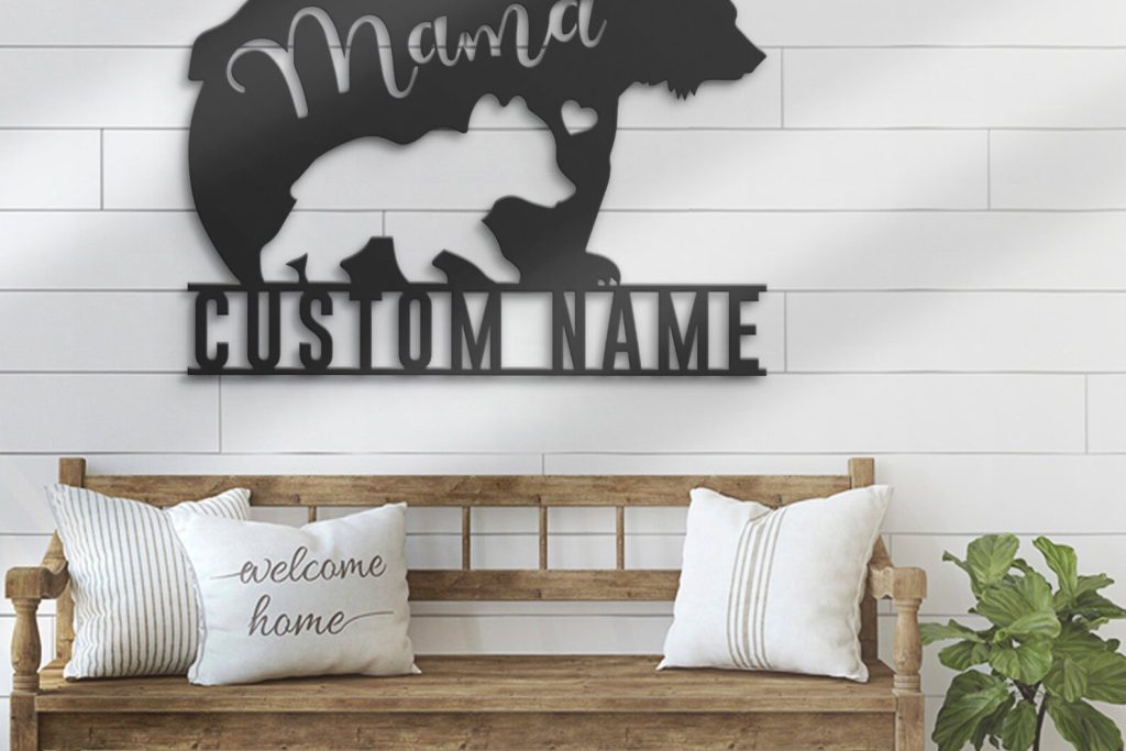 Personalized Mom & Baby Bear Sign: Metal Wall Art