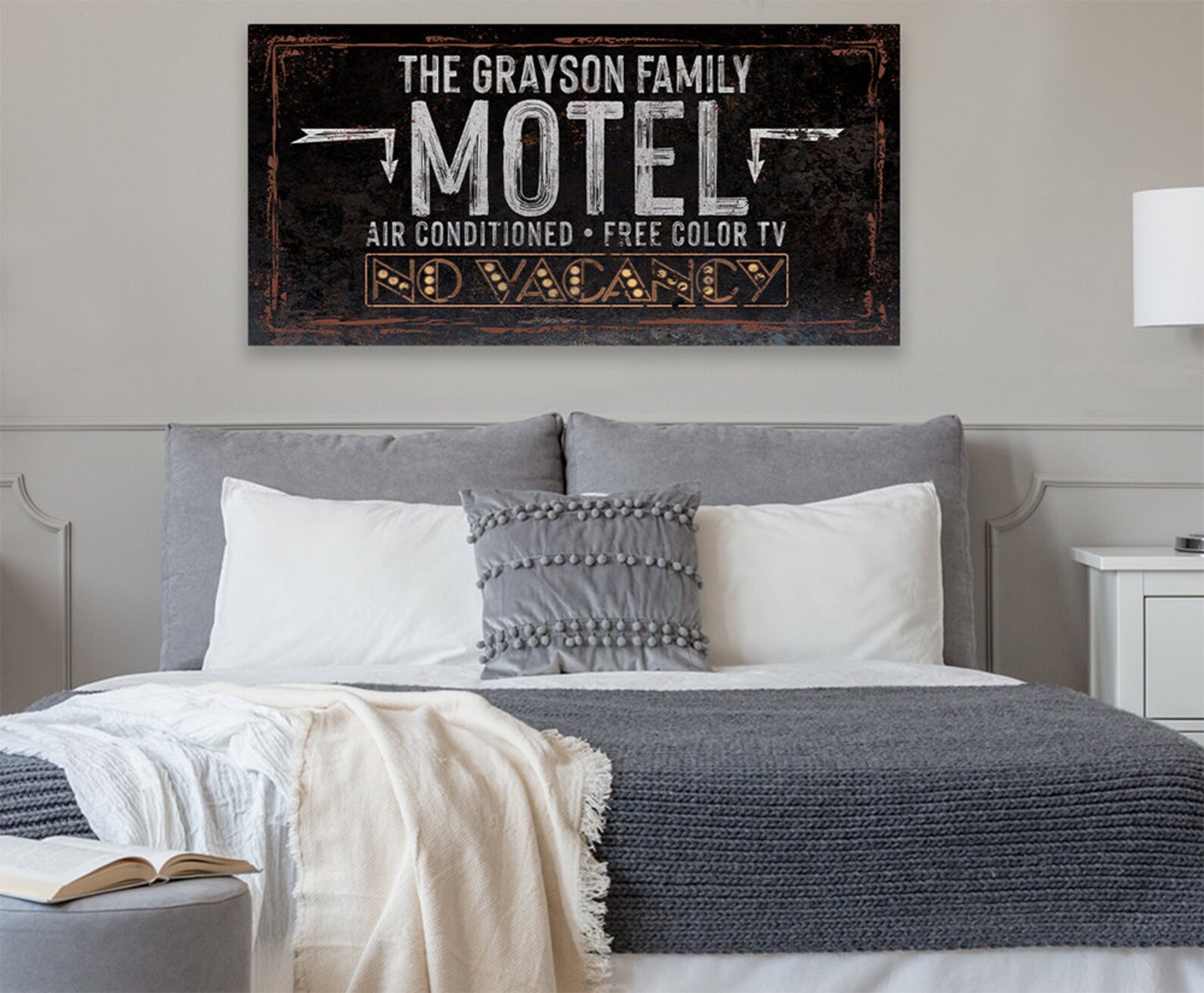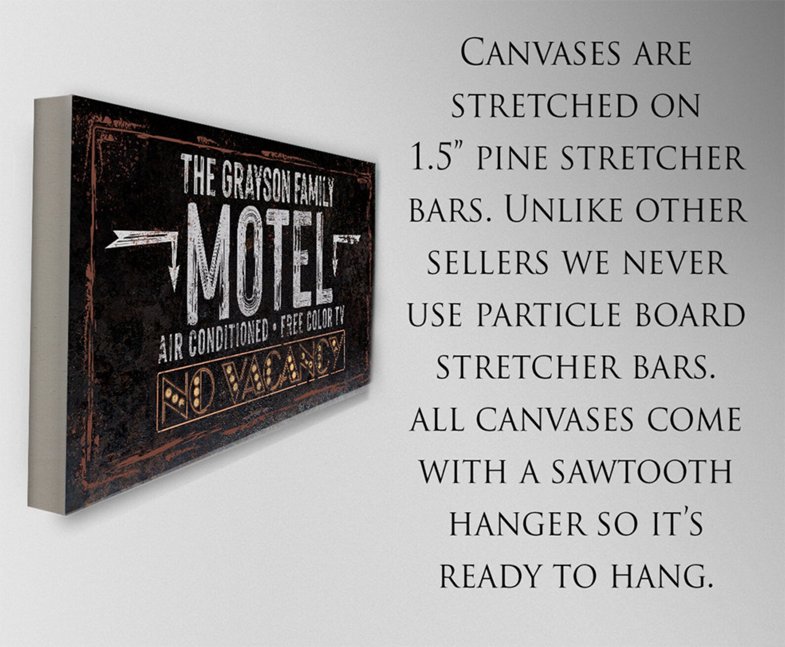 Personalized-No Vacancy Motel-Large Canvas(Not Printed on Metal)-Stretched on Wood -Couch or Bedroom Headboard Decor-Great Wedding Gift