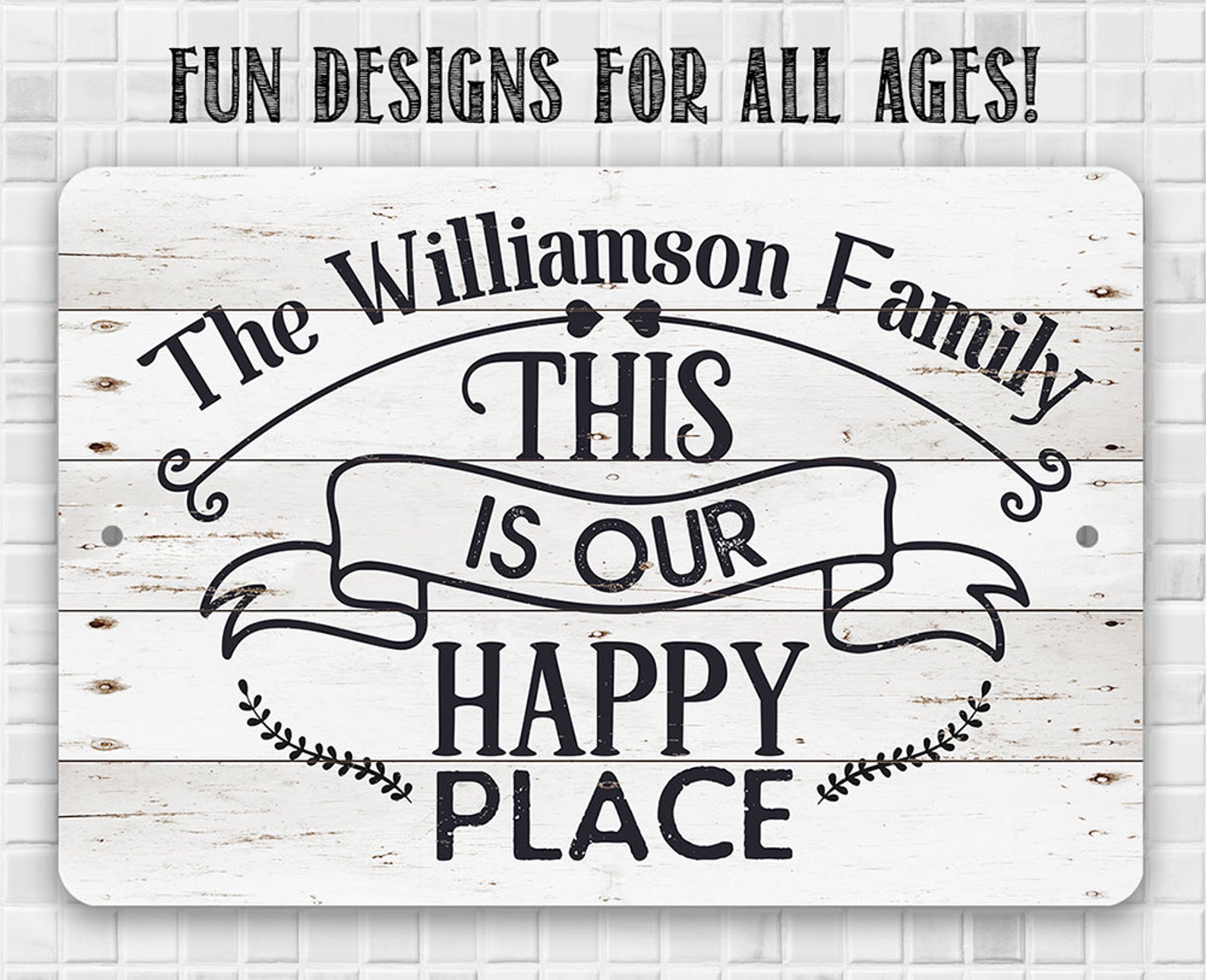 Personalized Our Happy Place Metal Sign-Tin -8" / 12" Use Indoor/Outdoor – Living Room Decor
