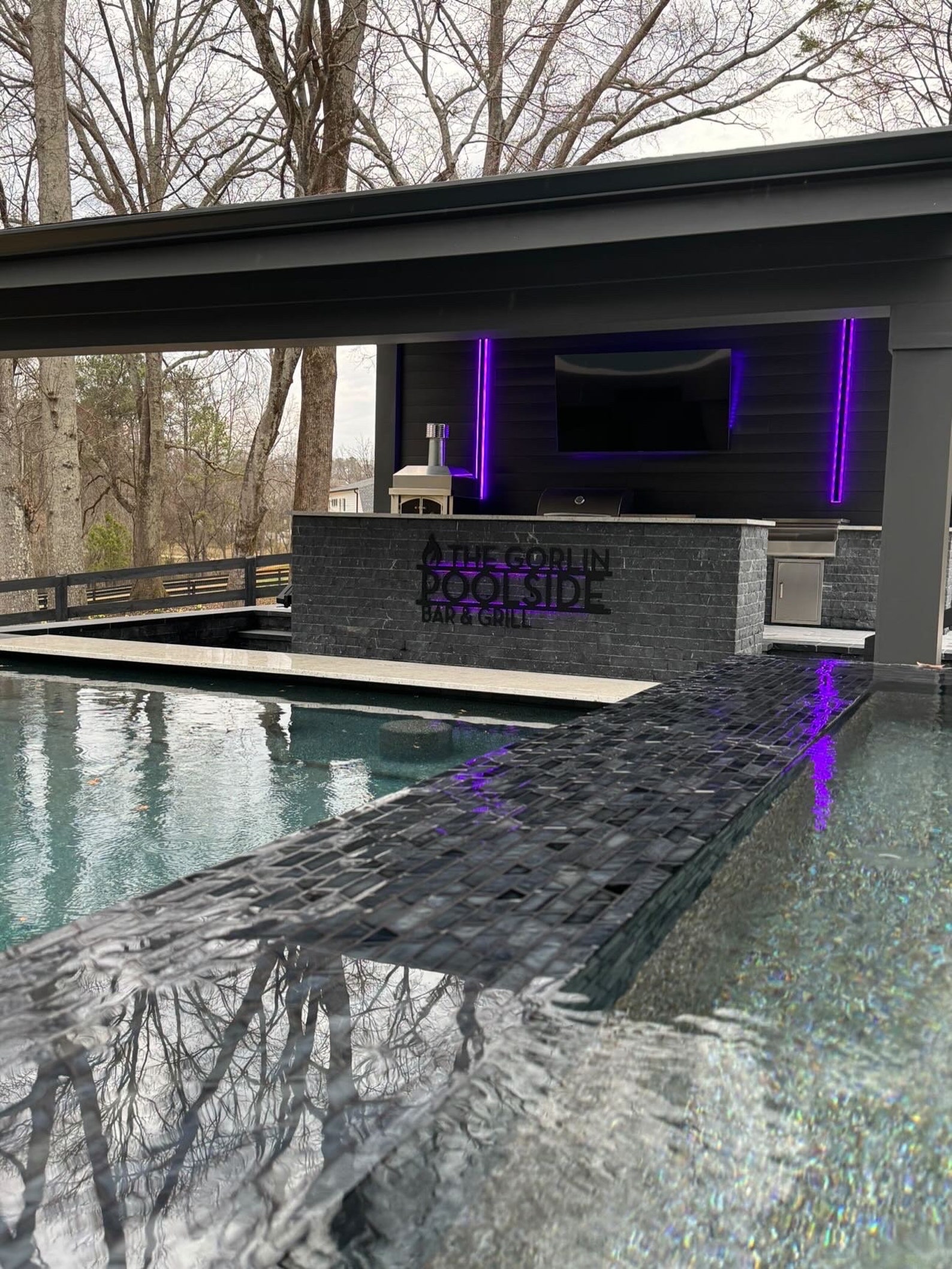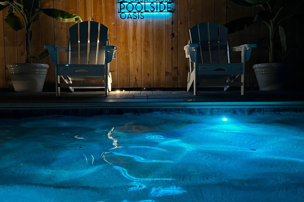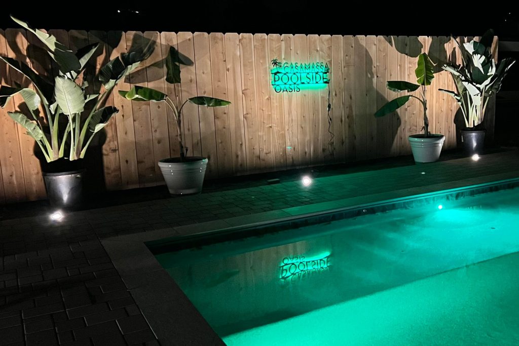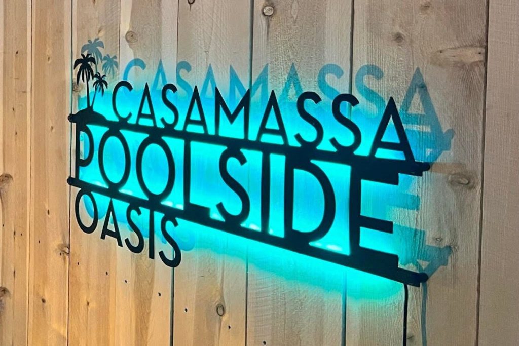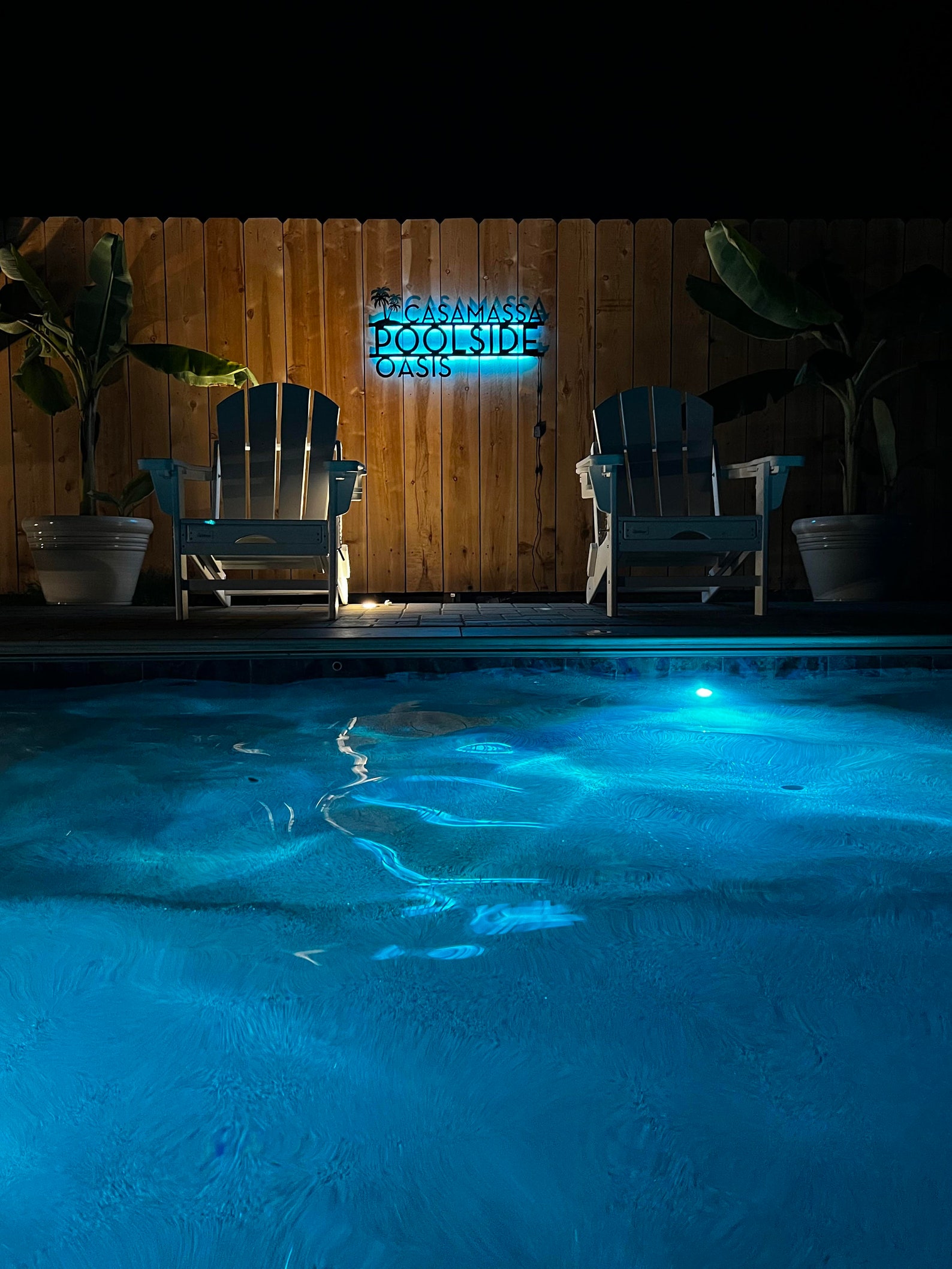 Personalized Palm Tree Oasis Pool Sign – Pictured in Matte Black