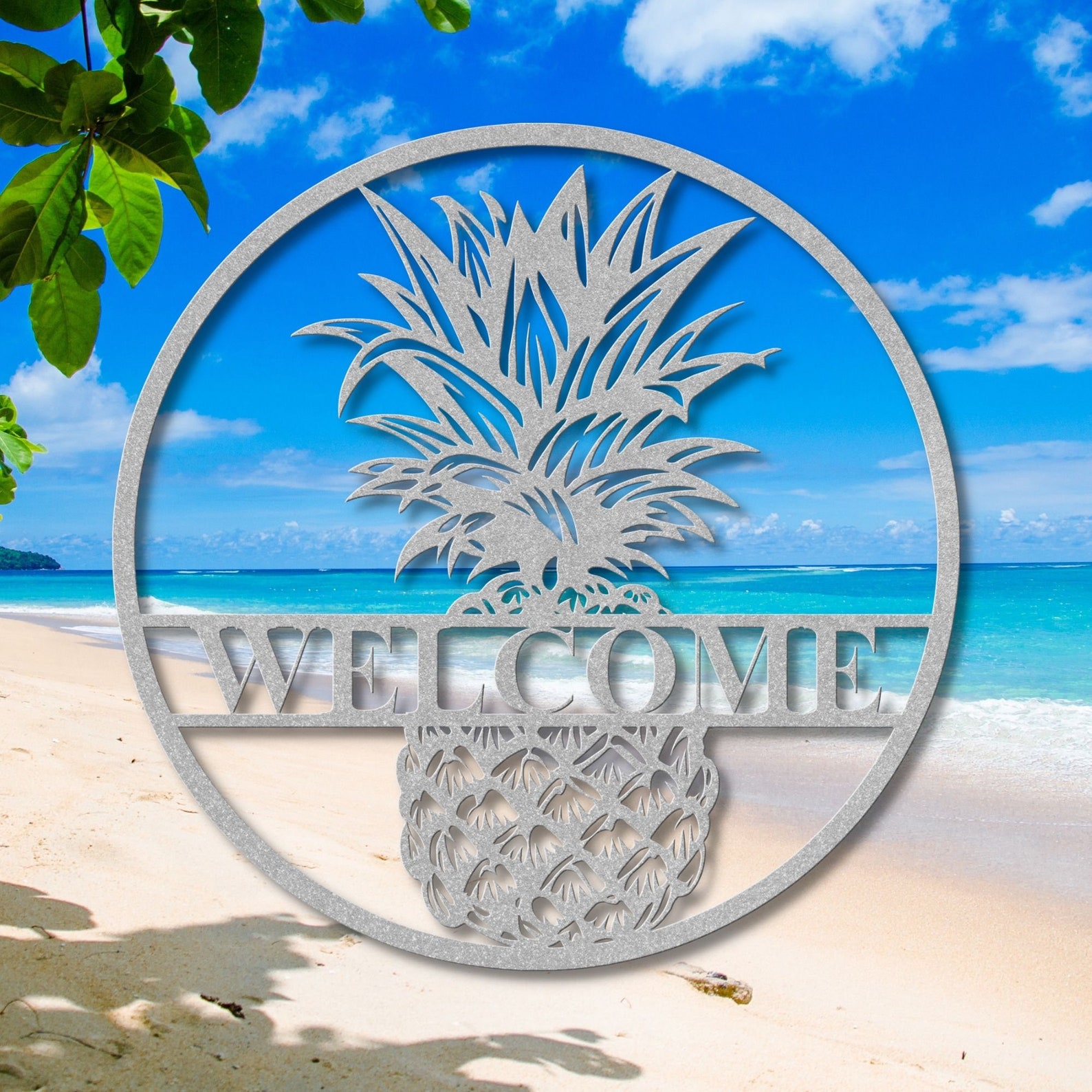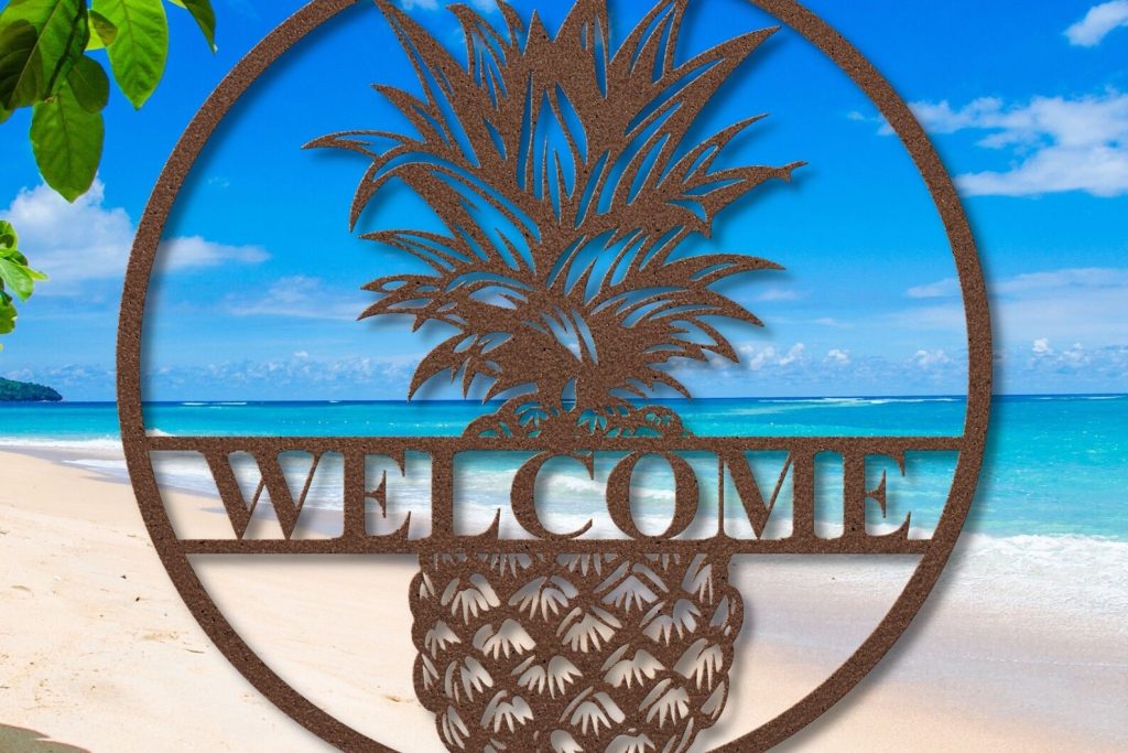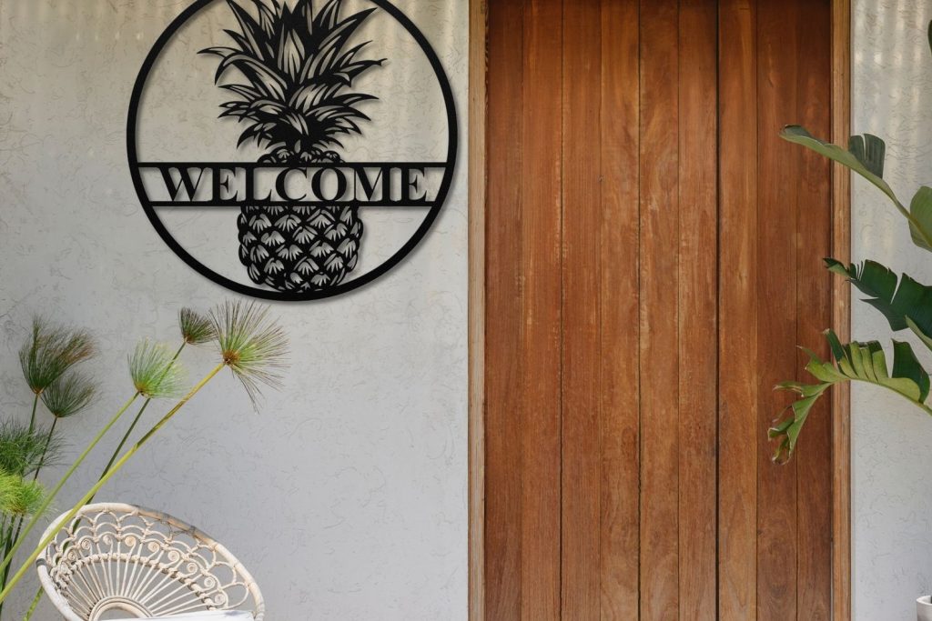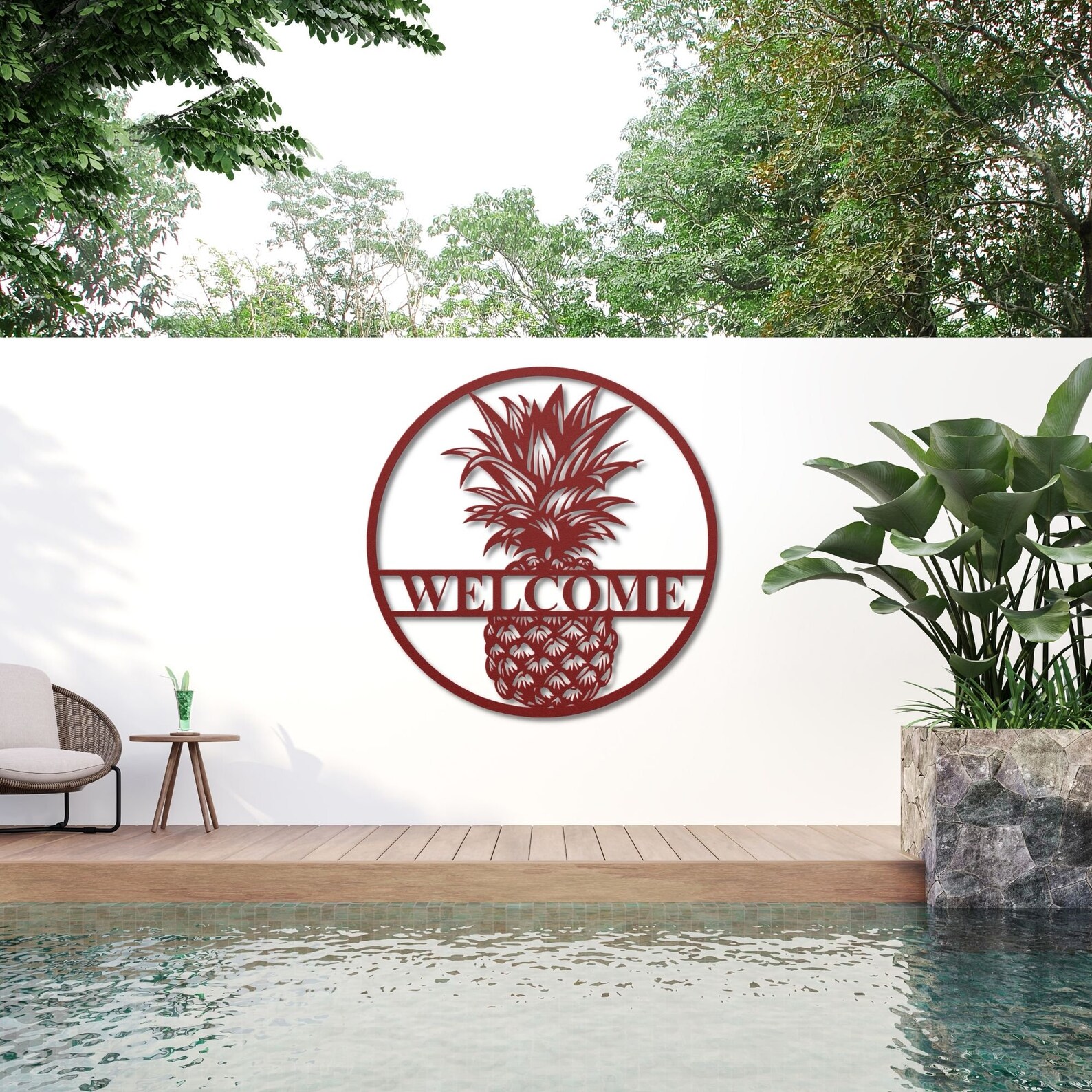 Each piece is handcrafted with precision, making it a unique addition to your home decor. The metal wall art features a stunning pineapple theme, symbolizing hospitality and warmth. Customize the sign with your family name for a truly special touch.