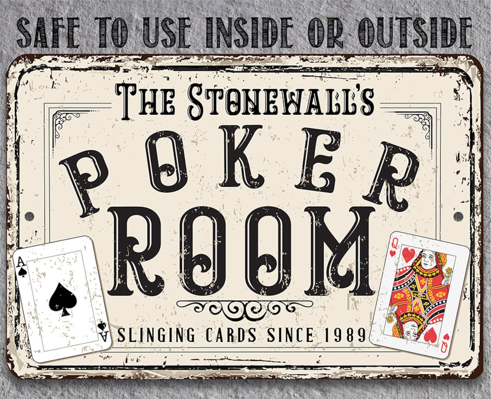Personalized Metal Sign – Poker Room – Tin -8" or 12" Use Indoor/Outdoor – Great Gift & Decor