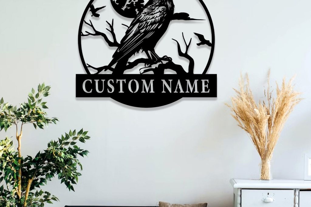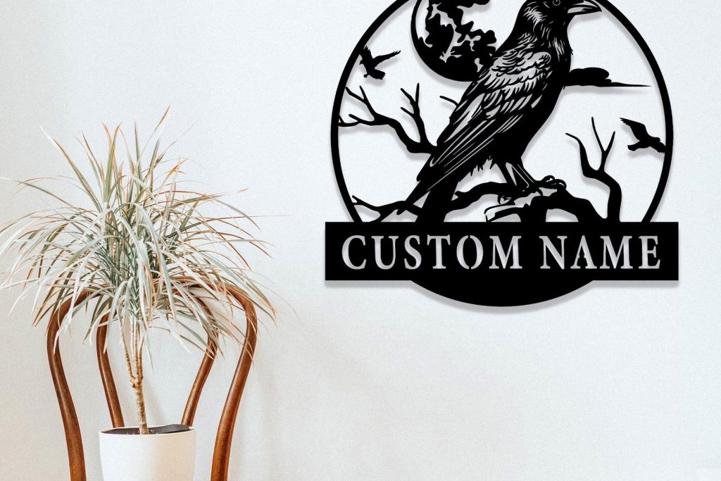 Personalized Raven Sign, Metal Wall Art, Birdwatcher Gift