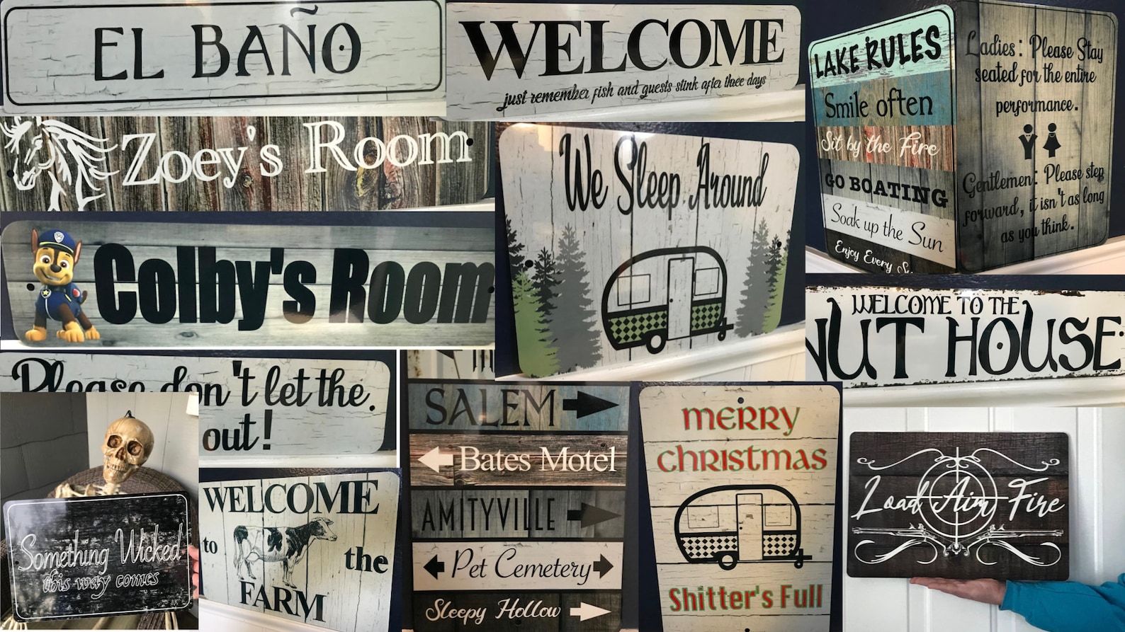 Personalized SHE SHED name – choose from backgrounds – Barn wood, Grey Wood, White Crackle, Rusty orTeal wood style backgrounds – Metal Sign Door Plaque – (Note not actual wood or rust so smooth and safe to the touch)