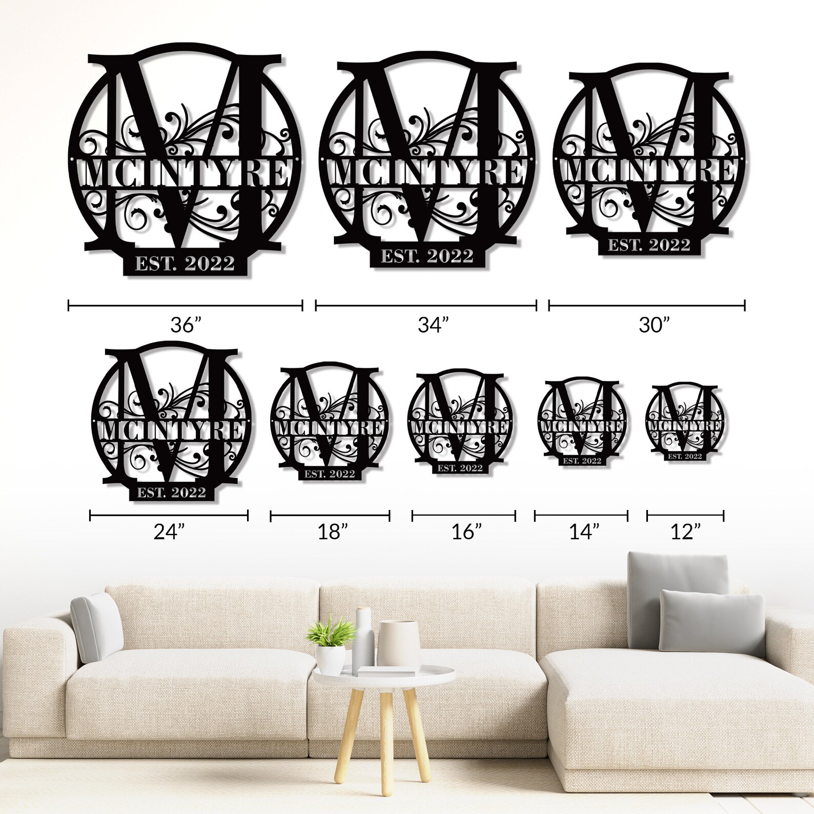 Personalized Split Letter Metal Last Name Sign
