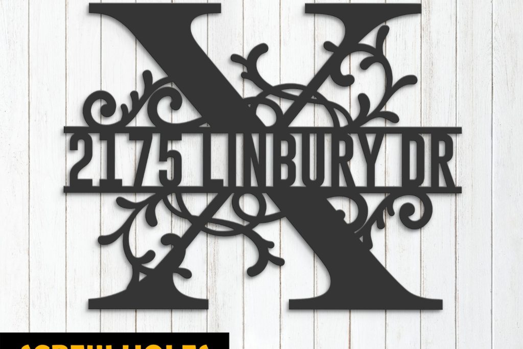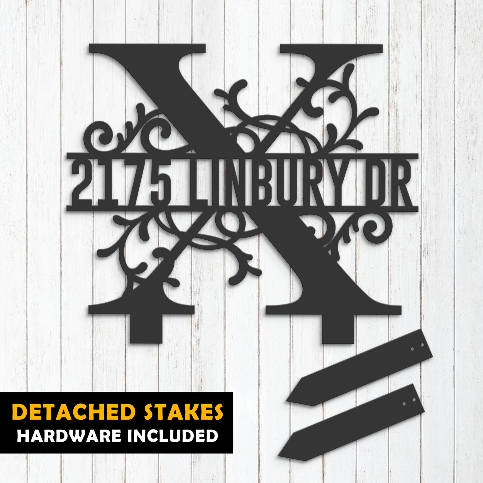 Be the first to review “Personalized Split Letter X Metal Address Sign – Floral”