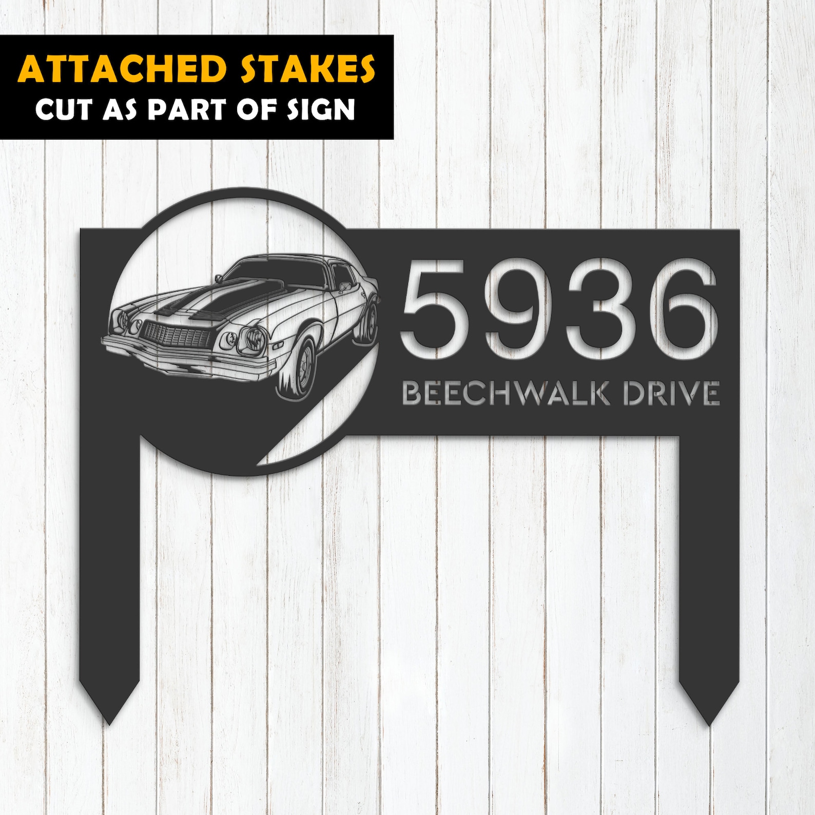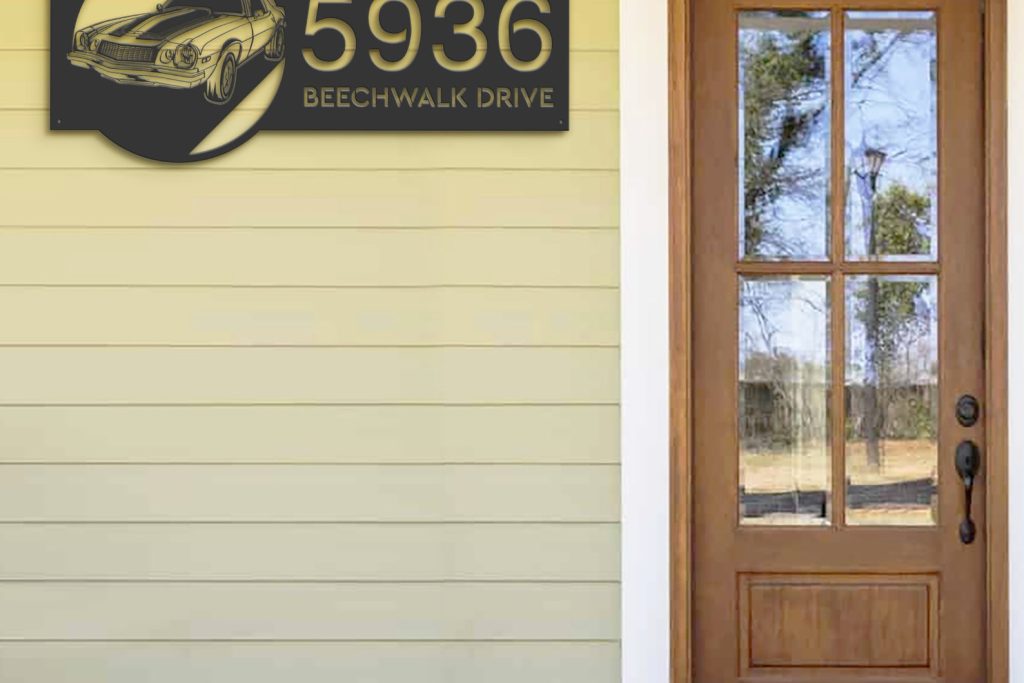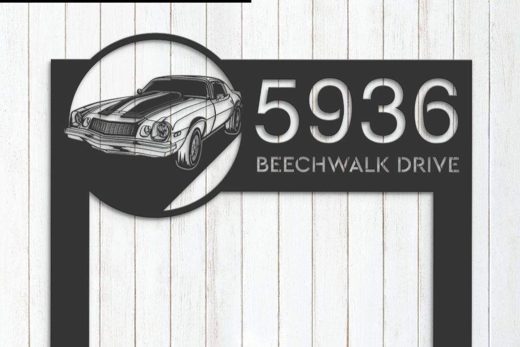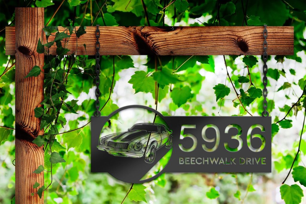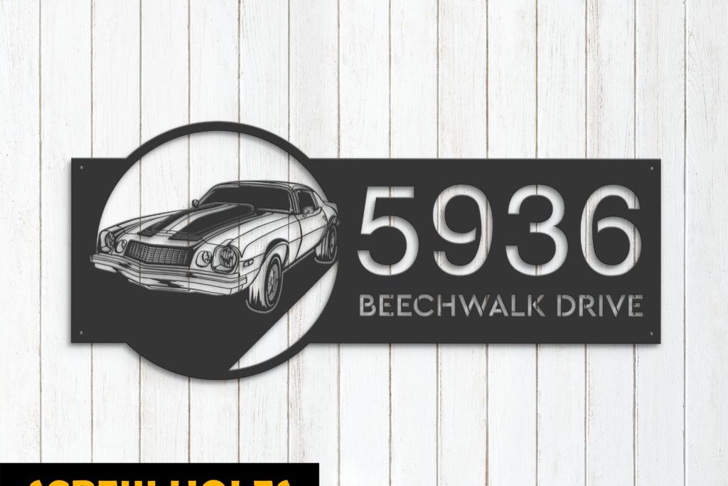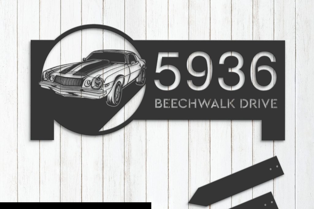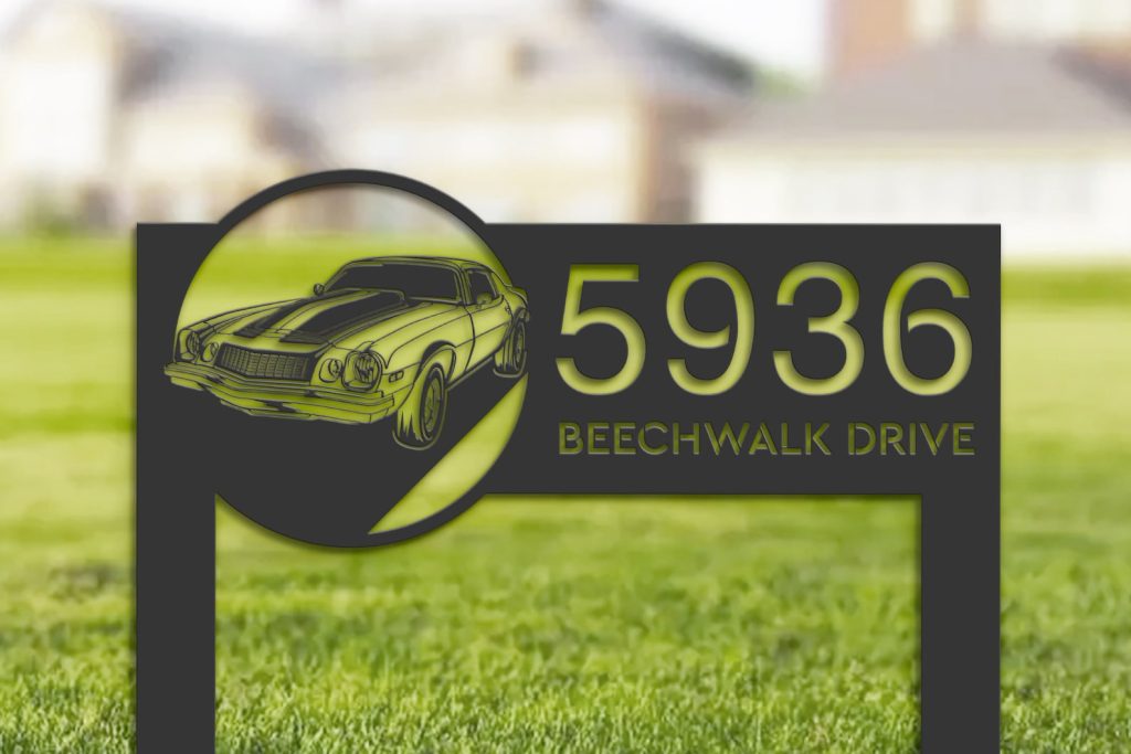 Personalized Sport Car Metal Address Sign – Custom House Number