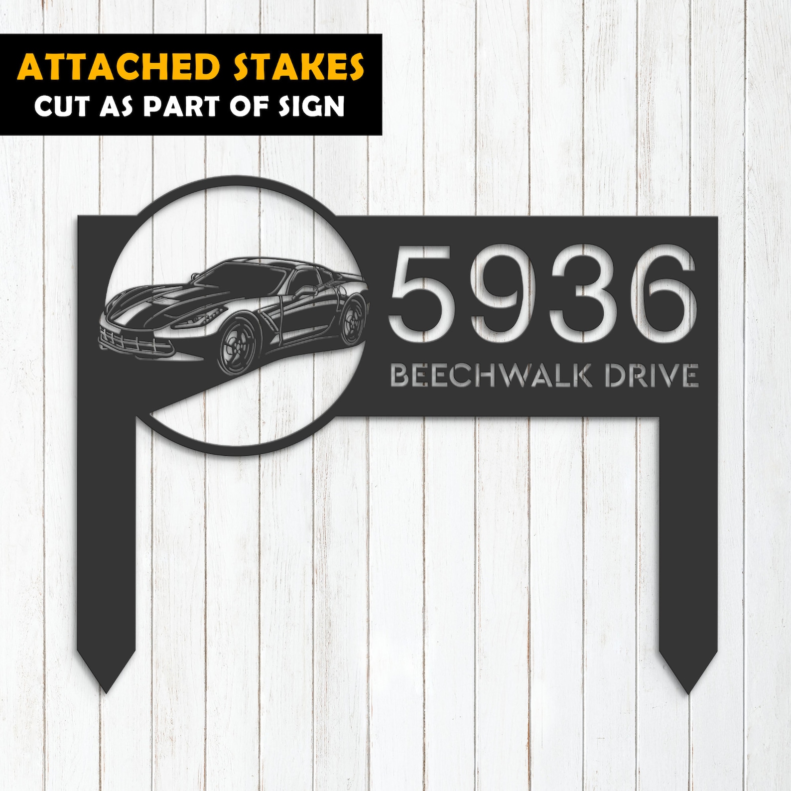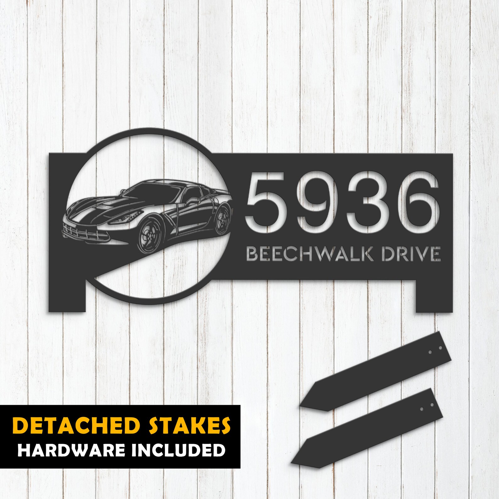 Personalized Sport Car Metal Address Sign – Custom House Number