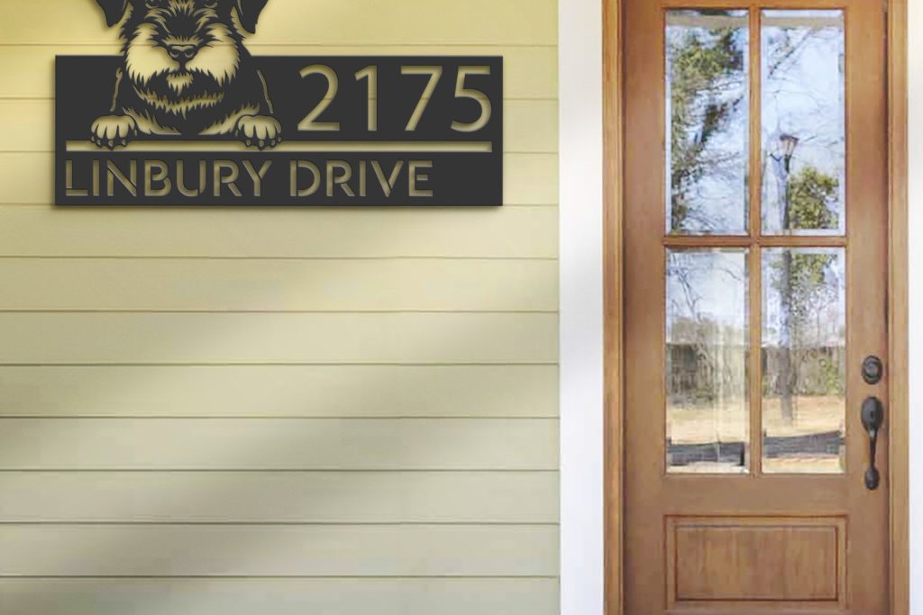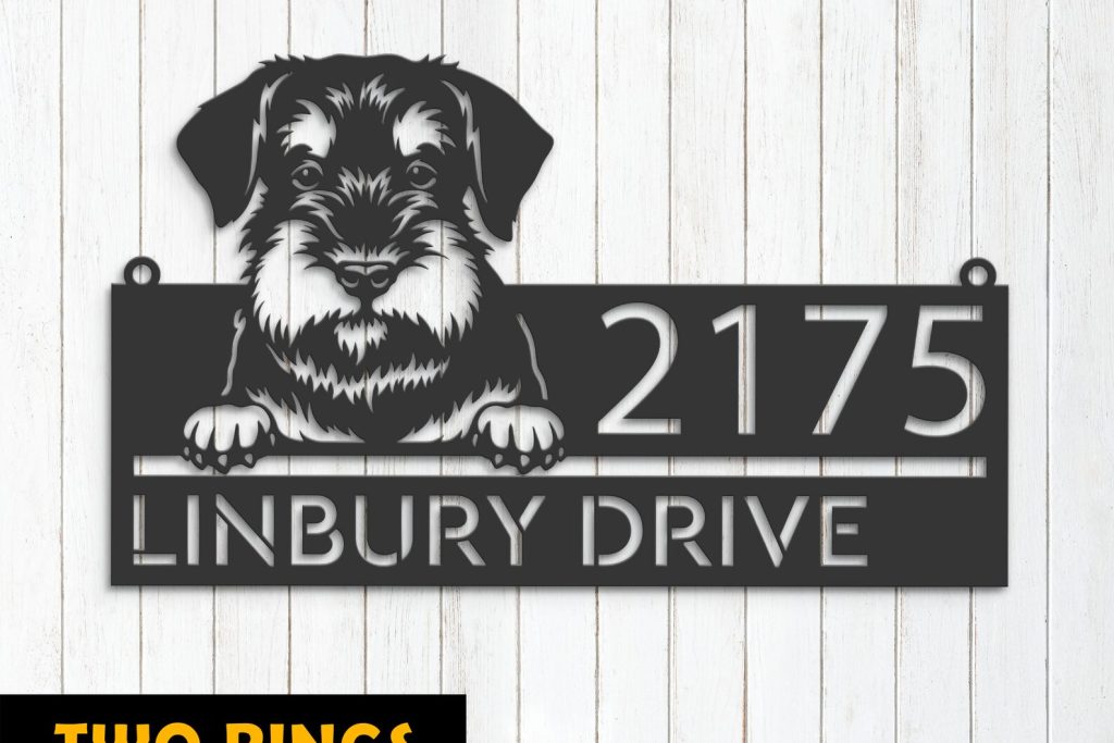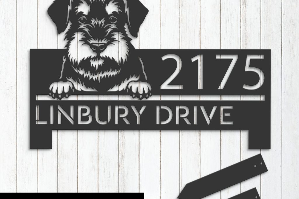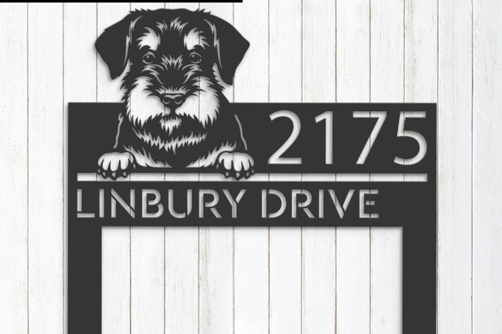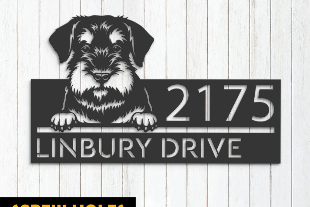 Personalized Standard Schnauzer Metal Address Sign – Cute Puppy Plaque