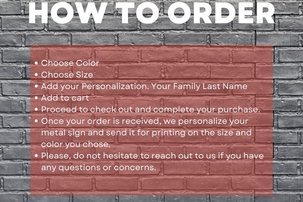 We offer a choice of 5 colors and six different sizes! This metal sign is built to withstand the elements for years.
