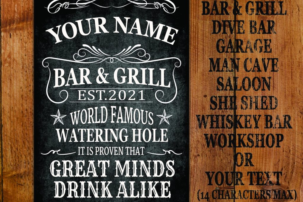 Be the first to review “Personalized Vintage Style Black Metal Bar Sign”