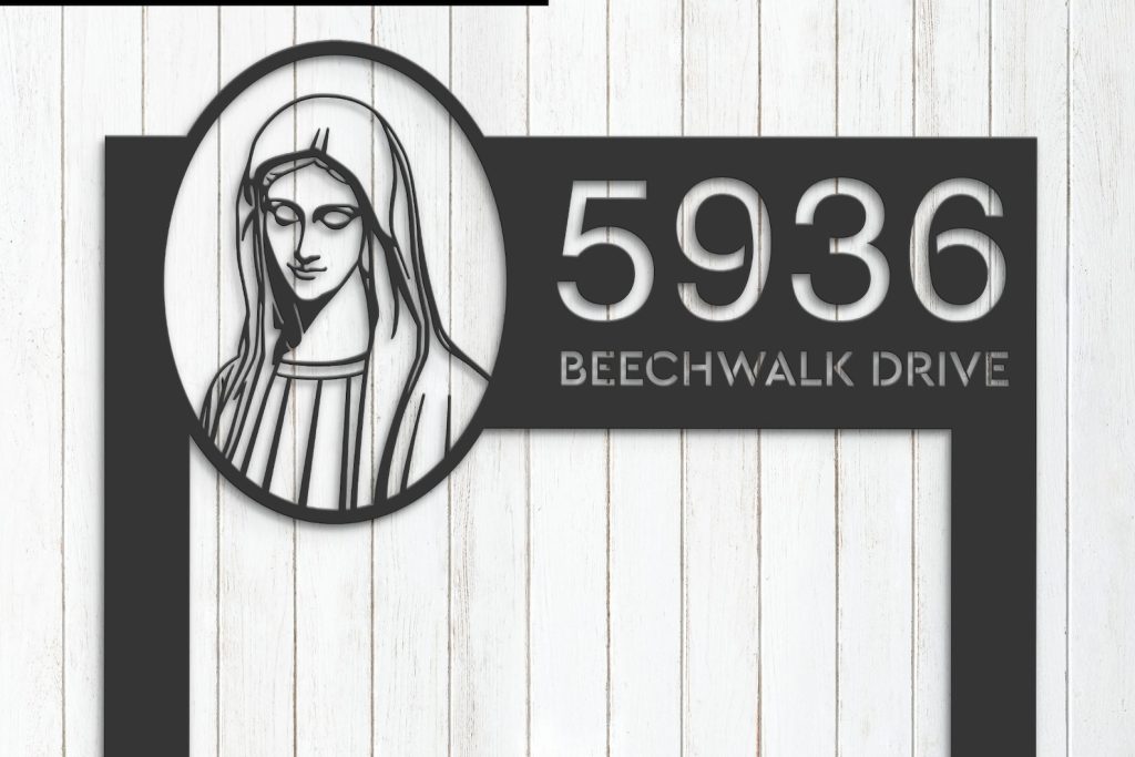 Be the first to review “Personalized Virgin Mary Christian Metal Address Sign”