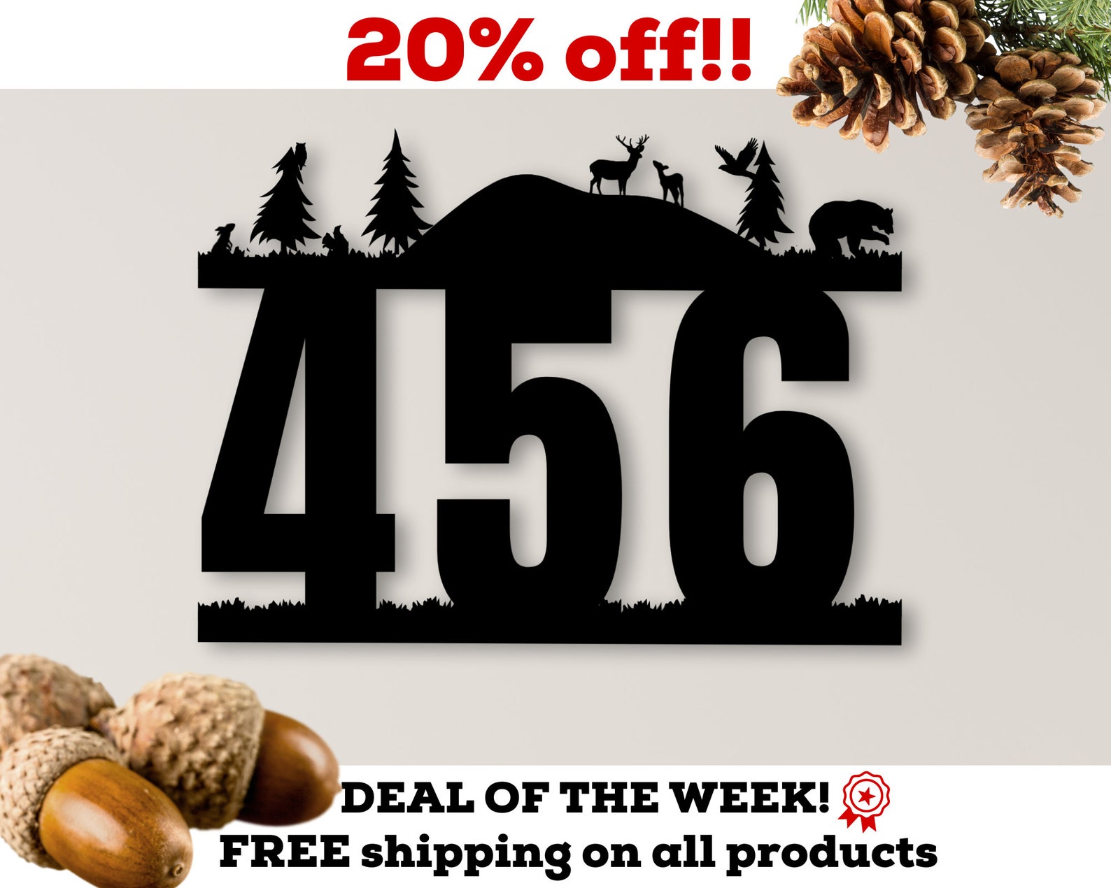 Be the first to review “Personalized Wall Hangings – Custom Nature Deer Hill Forest Address Sign”