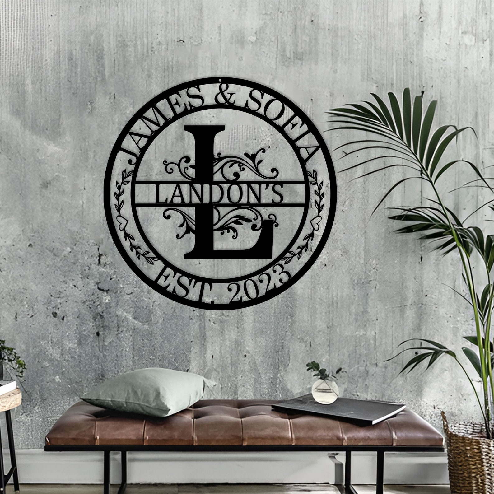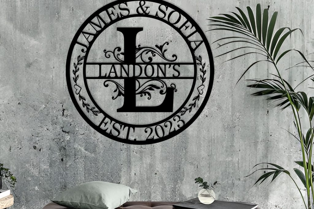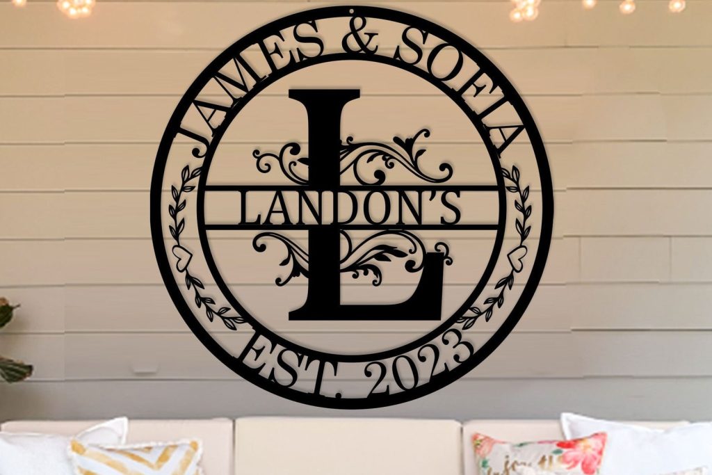 Personalized Wedding Gift,Family Name Metal Sign,Last Name Sign,Initial,Metal Monogram,Door Hanger,Wedding,Anniversary,Custom Metal Art,Gift