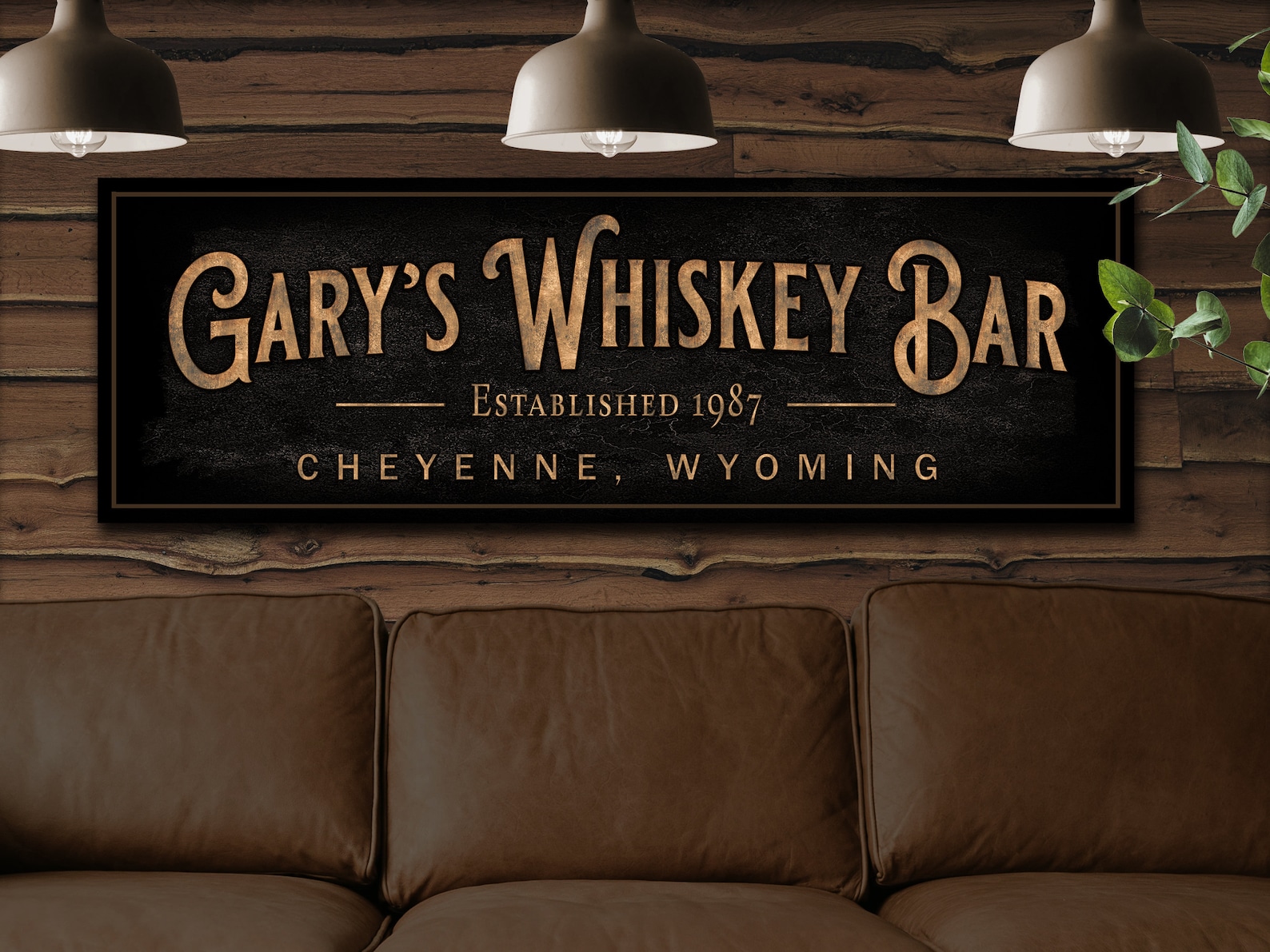 I9;ll personalize this rustic, Whiskey Bar sign with your name and Est. year. In fact, I can alter any of the text on this sign to meet your needs! This personalized whiskey bar sign is very unique and can be cherished and viewed forever. Thank you for your interest!
