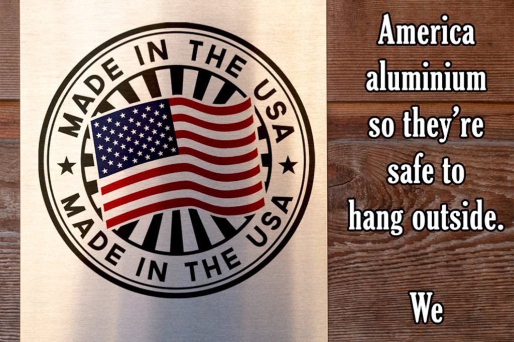 Durable – 8" x 12" or 12" x 18" Aluminum metal sign printed with epoxy ink so you can proudly hang it inside or outside