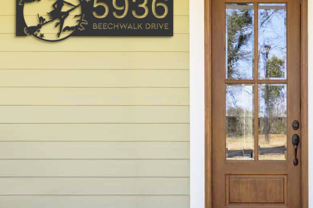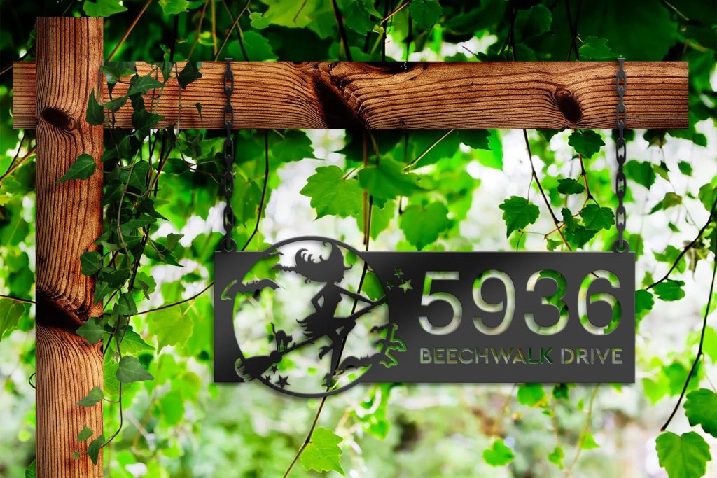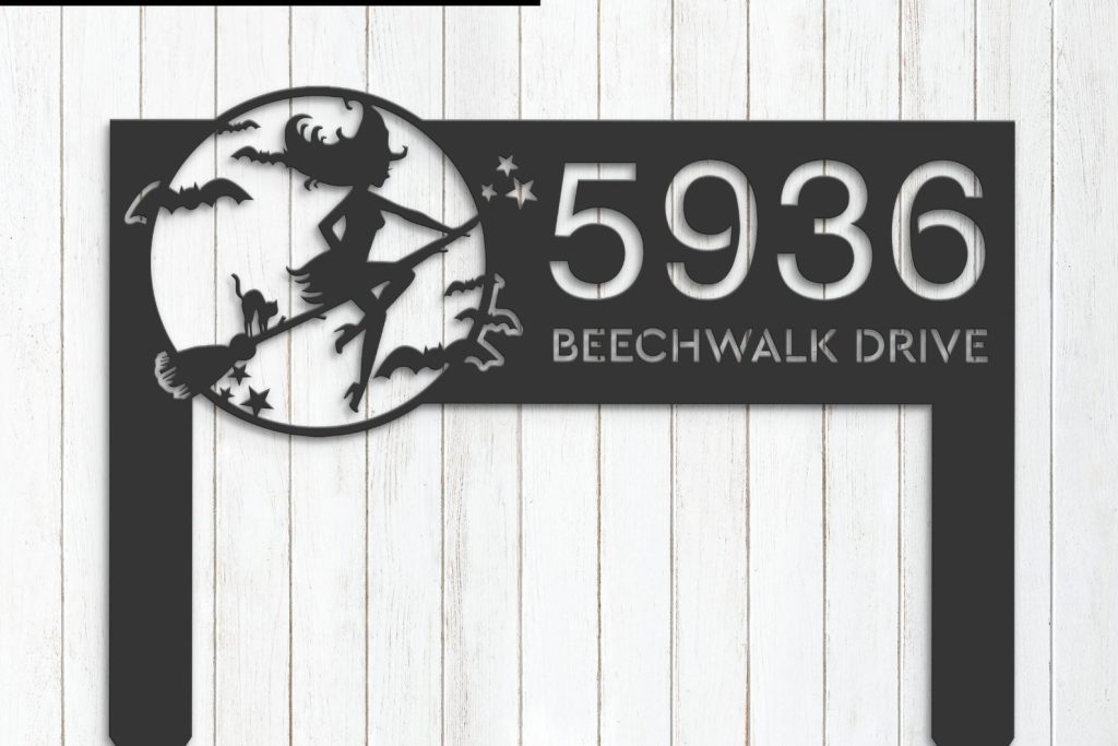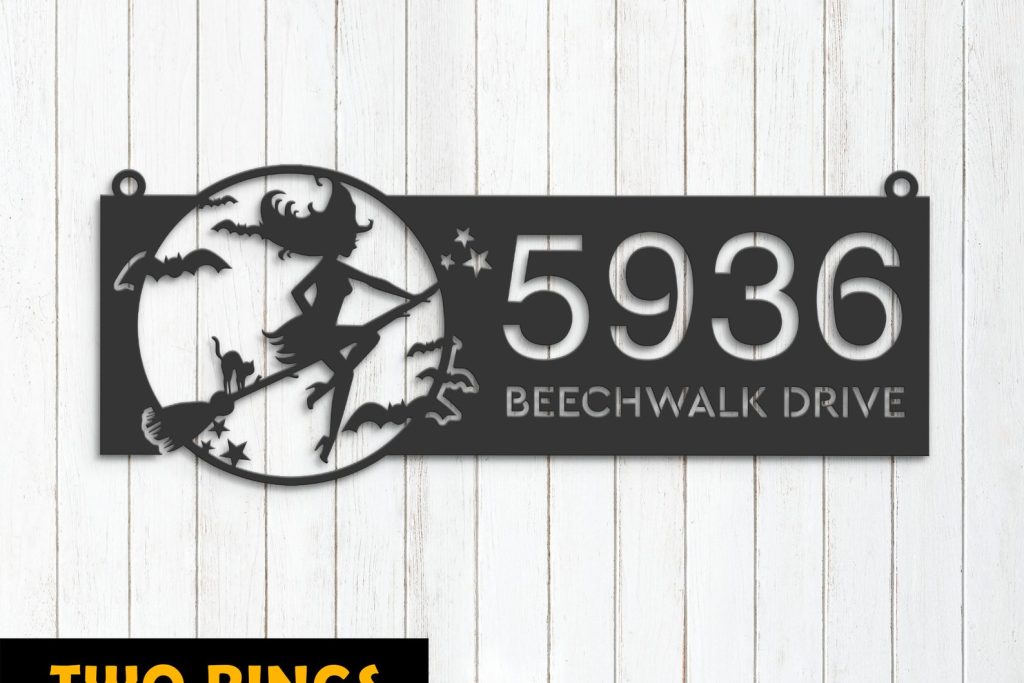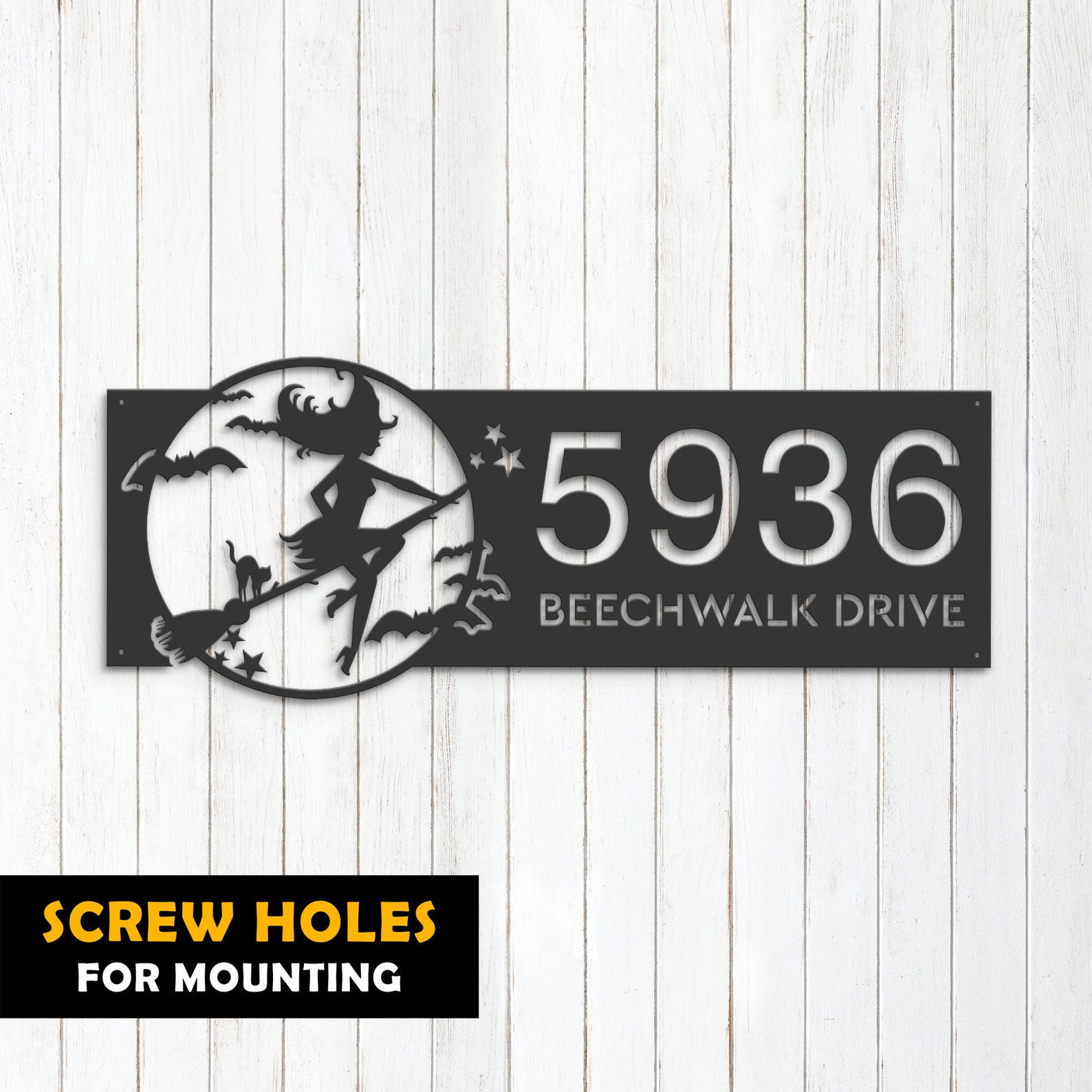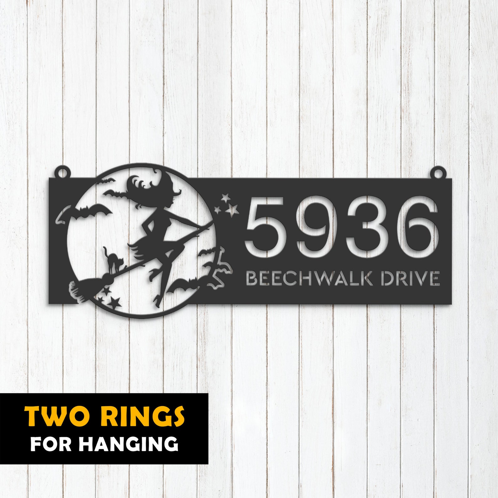 Personalized Witch & Black Cat Halloween Metal Address Sign