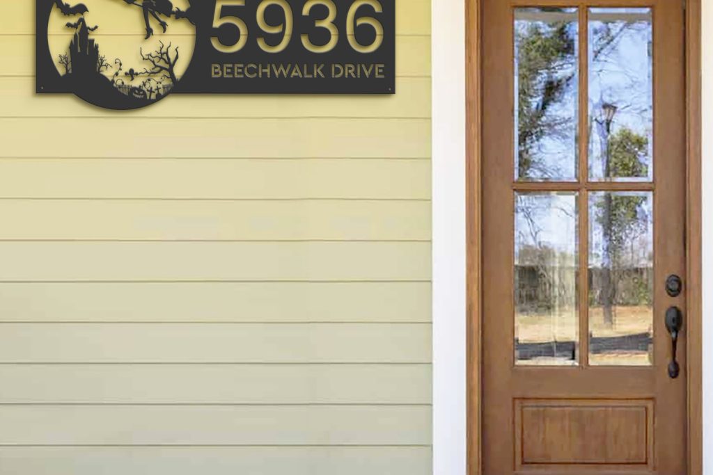 Personalized Witch & Black Cat Halloween Metal Address Sign
