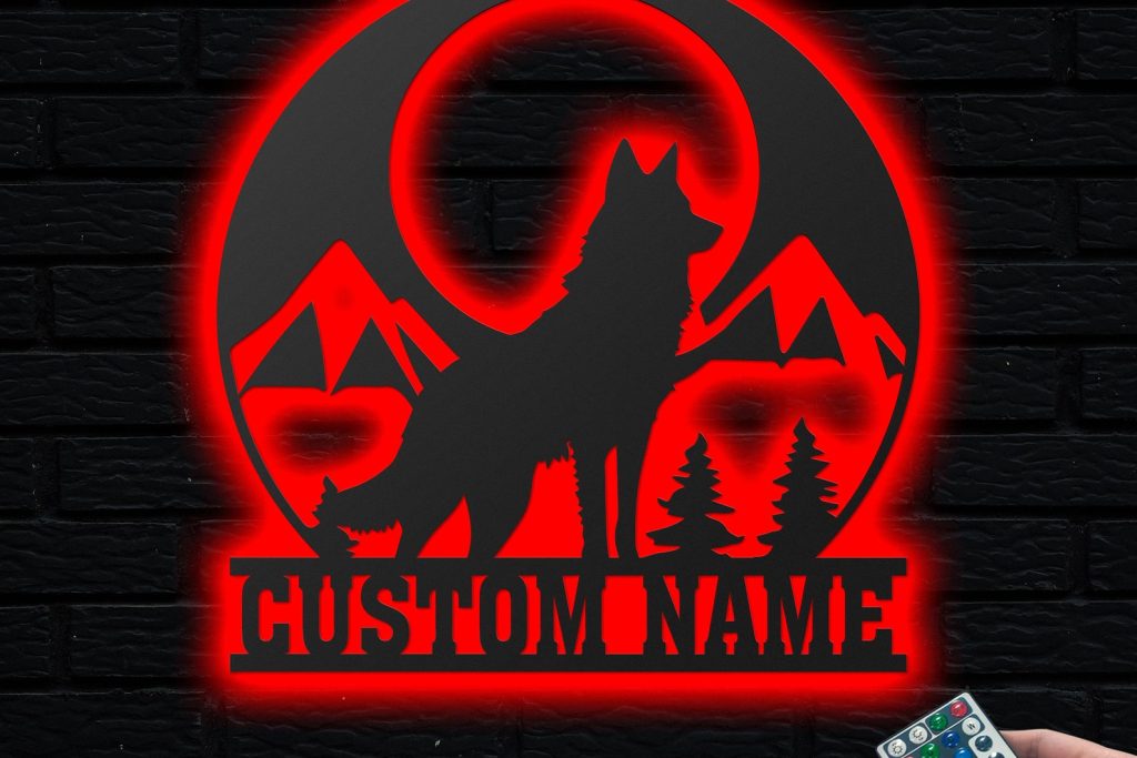 Be the first to review “Personalized Wolf in Forest Metal Sign with LED – Nursery Decor”
